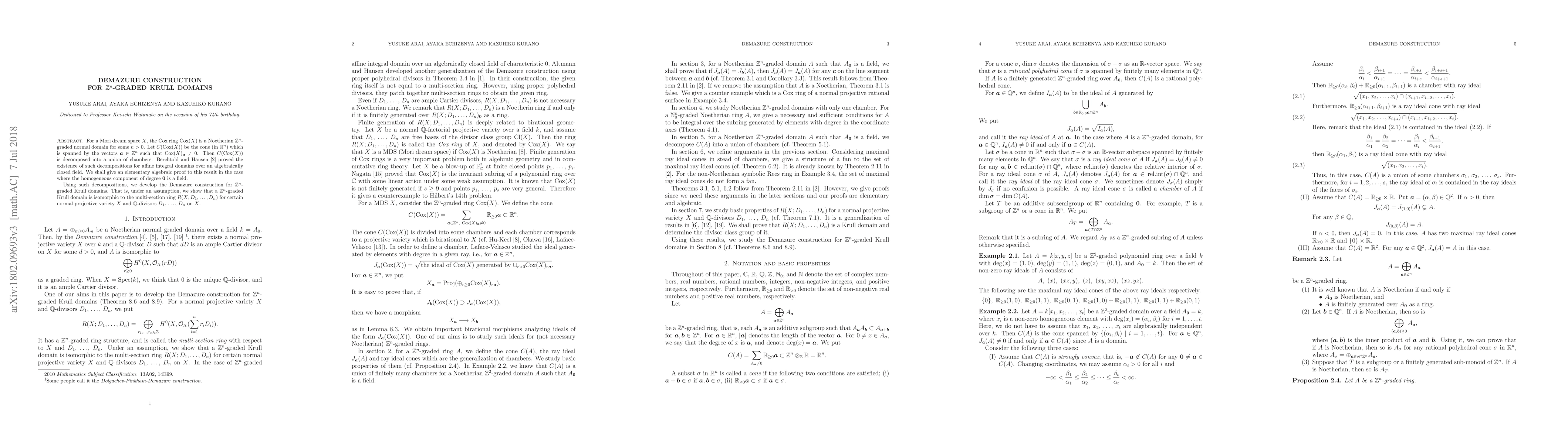 This paper provides an elementary algebraic proof for the decomposition of the cone of the Cox ring of a Mori dream space into chambers, and uses this to develop the Demazure construction for Z^n-graded Krull domains, showing their isomorphism to multi-section rings of certain normal projective varieties with specified Q-divisors.