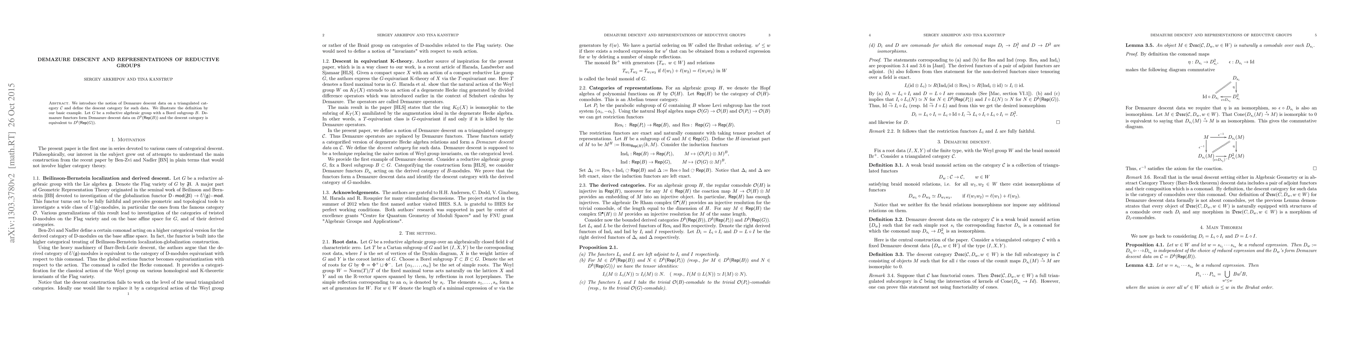 This paper introduces Demazure descent data on a triangulated category and defines the corresponding descent category, demonstrating its application through the derived category of representations of a Borel subgroup, which is equivalent to the derived category of representations of the reductive group.