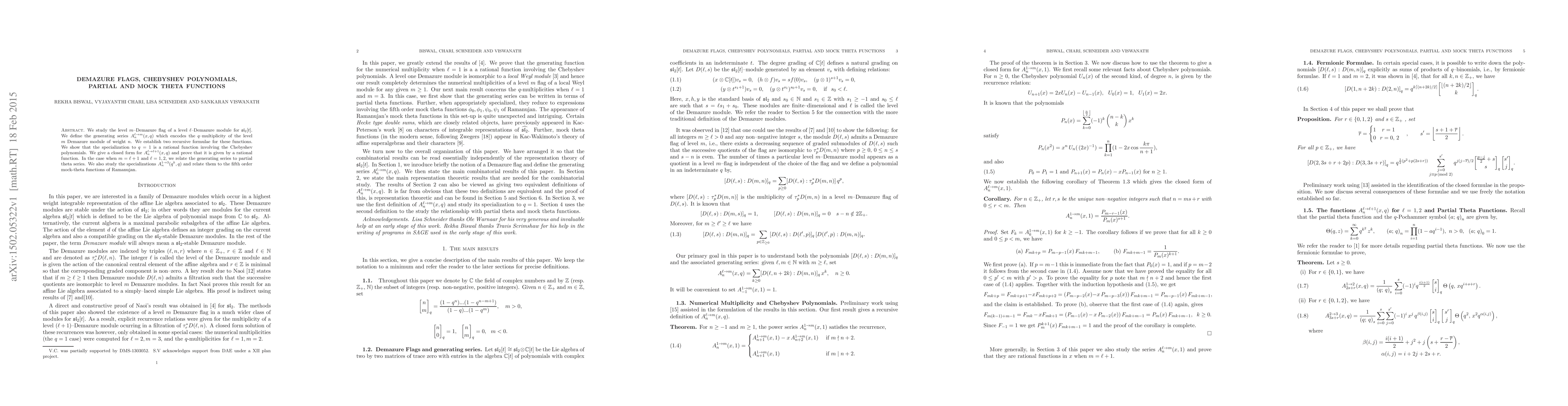 We study the level $m$--Demazure flag of a level $\ell$--Demazure module for $\frak{sl}_2[t]$. We define the generating series $A_n^{\ell \rightarrow m}(x,q)$ which encodes the $q$--multiplicity of the level $m$ Demazure module of weight $n$. We establish two recursive formulae for these functions. We show that the specialization to $q=1$ is a rational function involving the Chebyshev polynomials. We give a closed form for $A_n^{\ell \rightarrow \ell+1}(x,q)$ and prove that it is given by a rational function. In the case when $m=\ell+1$ and $\ell=1,2$, we relate the generating series to partial theta series. We also study the specializations $A_n^{1\rightarrow 3}(q^k,q)$ and relate them to the fifth order mock-theta functions of Ramanujan.