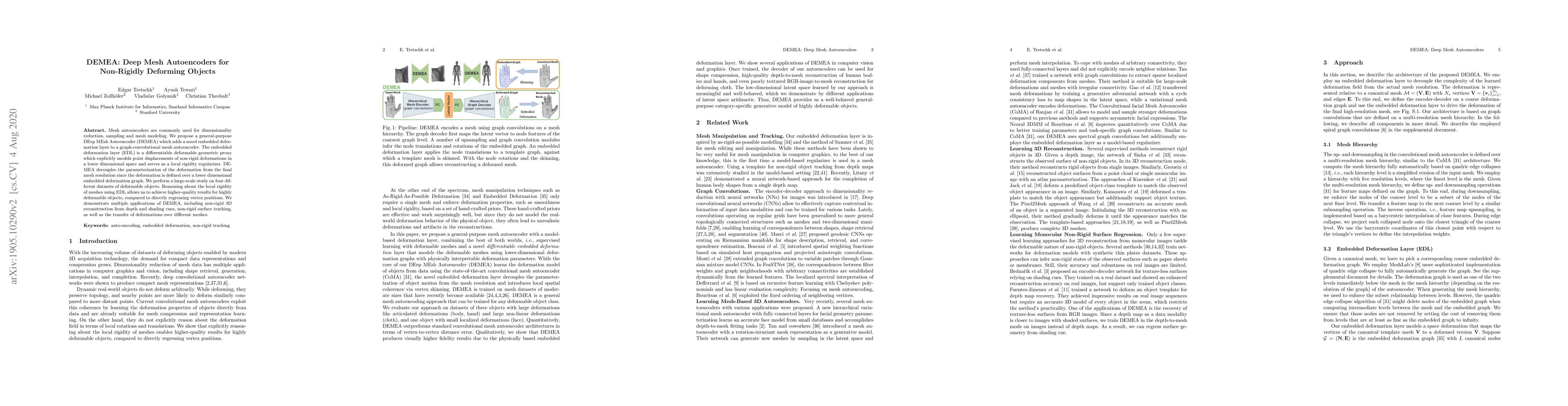 The research introduces DEMEA, a deep mesh autoencoder that incorporates an embedded deformation layer (EDL) for modeling non-rigid deformations in lower dimensional spaces. This method, tested on four datasets, outperforms direct vertex position regression, offering applications in 3D reconstruction, surface tracking, and deformation transfer across meshes.