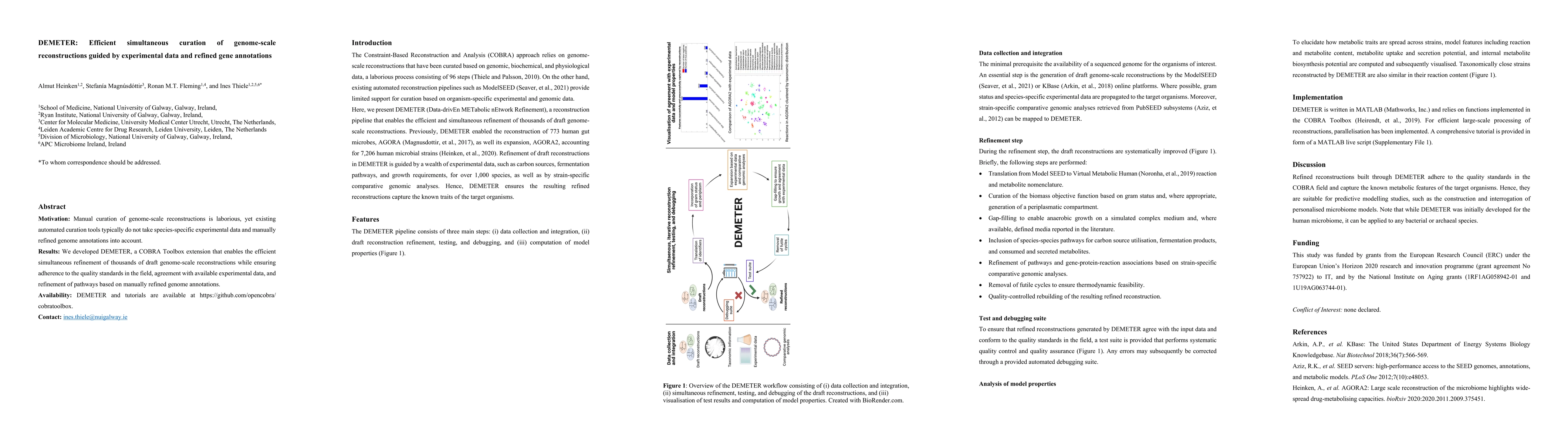 Motivation: Manual curation of genome-scale reconstructions is laborious, yet existing automated curation tools typically do not take species-specific experimental data and manually refined genome annotations into account. Results: We developed DEMETER, a COBRA Toolbox extension that enables the efficient simultaneous refinement of thousands of draft genome-scale reconstructions while ensuring adherence to the quality standards in the field, agreement with available experimental data, and refinement of pathways based on manually refined genome annotations. Availability: DEMETER and tutorials are available at https://github.com/opencobra/cobratoolbox.