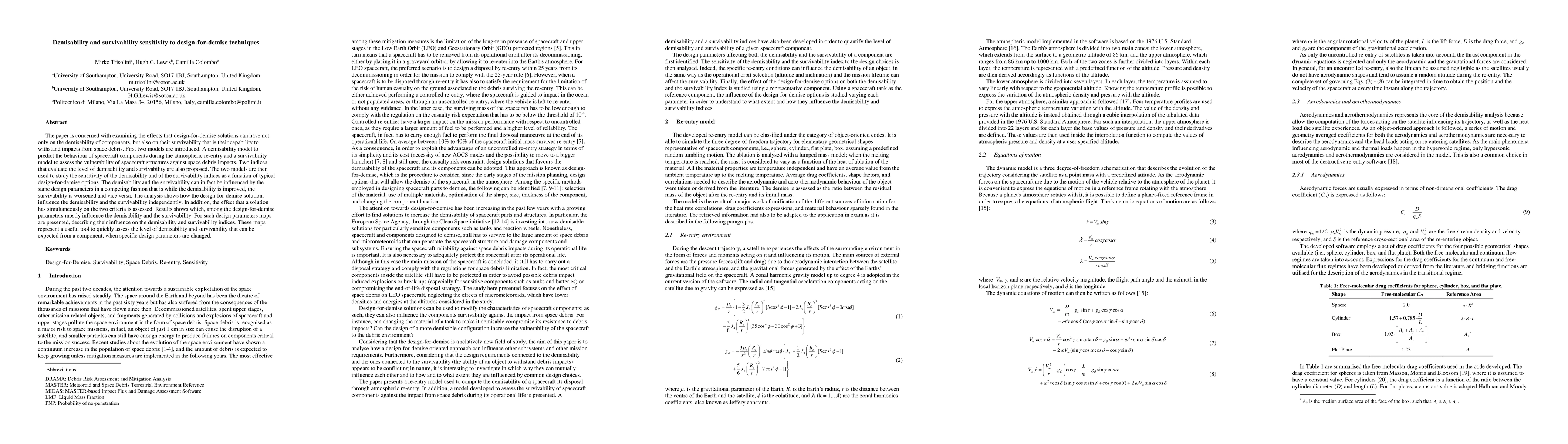 This paper investigates the impact of design-for-demise techniques on both the demisability and survivability of spacecraft components, introducing models and indices to evaluate these factors. It finds that design parameters can improve one aspect at the expense of the other, providing maps to help designers quickly assess the trade-offs involved.