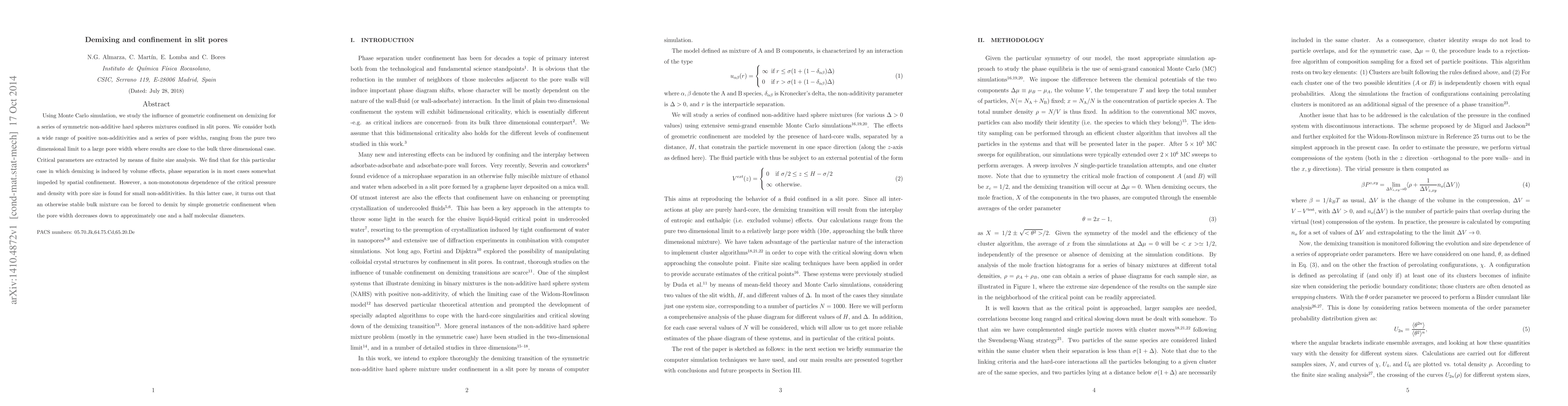 This paper uses Monte Carlo simulations to explore how geometric confinement affects demixing in non-additive hard sphere mixtures in slit pores. The study reveals that while confinement generally impedes phase separation, it can induce demixing in stable bulk mixtures when pore widths are reduced to around one and a half molecular diameters.