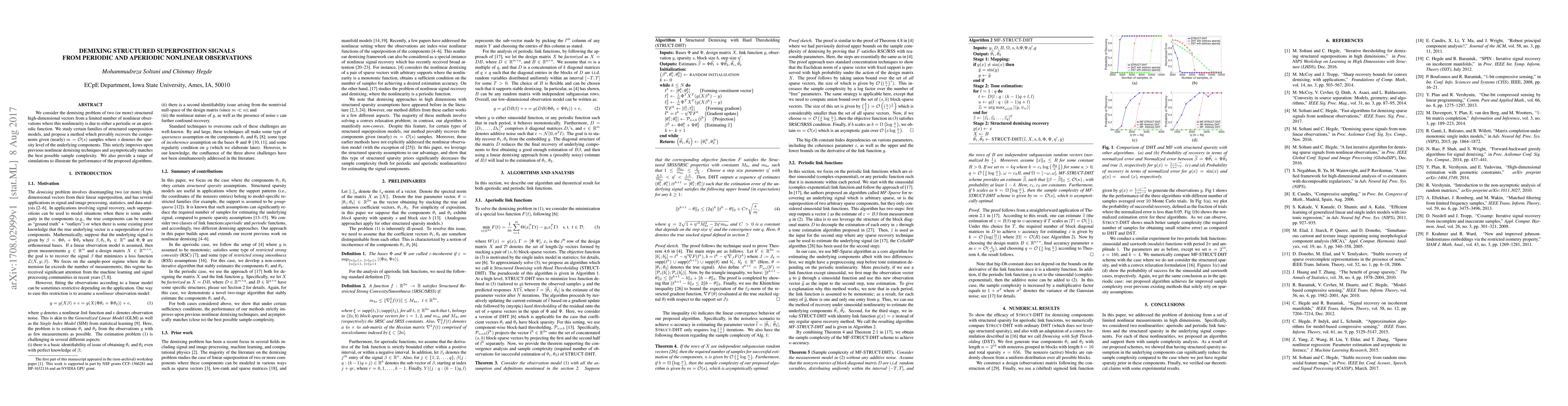 We consider the demixing problem of two (or more) structured high-dimensional vectors from a limited number of nonlinear observations where this nonlinearity is due to either a periodic or an aperiodic function. We study certain families of structured superposition models, and propose a method which provably recovers the components given (nearly) $m = \mathcal{O}(s)$ samples where $s$ denotes the sparsity level of the underlying components. This strictly improves upon previous nonlinear demixing techniques and asymptotically matches the best possible sample complexity. We also provide a range of simulations to illustrate the performance of the proposed algorithms.