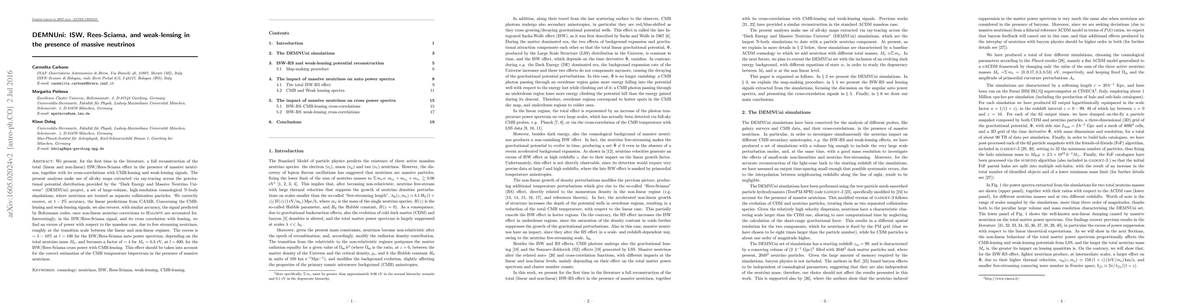 This paper presents a comprehensive reconstruction of the ISW/Rees-Sciama effect, considering massive neutrinos, and cross-correlates it with CMB-lensing and weak-lensing signals from the DEMNUni simulations. An excess of power in the ISW/Rees-Sciama signal is observed, attributed to free streaming neutrinos, which should be accounted for in CMB temperature bispectrum estimations.