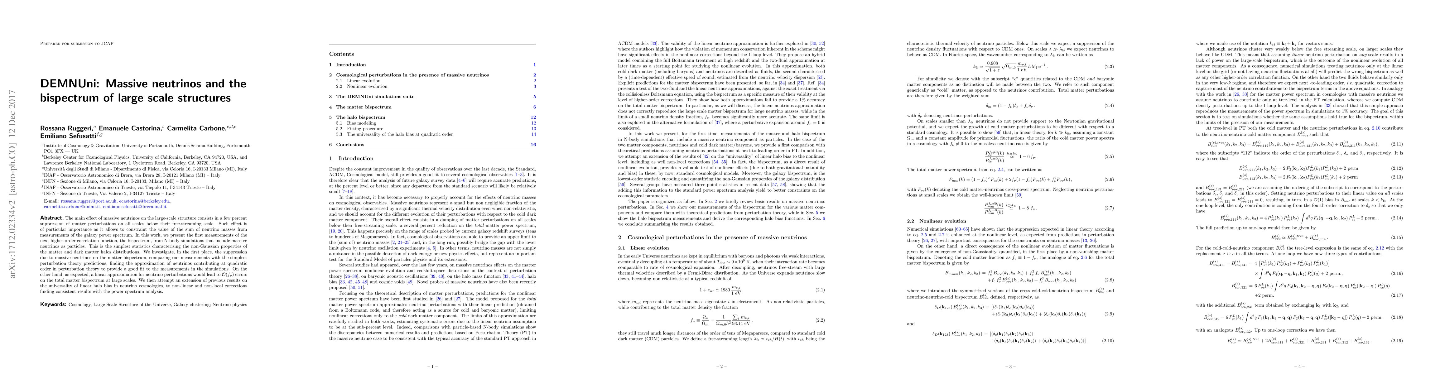 This paper investigates the impact of massive neutrinos on the bispectrum of large-scale structures, finding a suppression effect that can constrain neutrino mass sums. The study shows that a quadratic order approximation in perturbation theory fits the simulation data well, while linear approximations introduce significant errors.