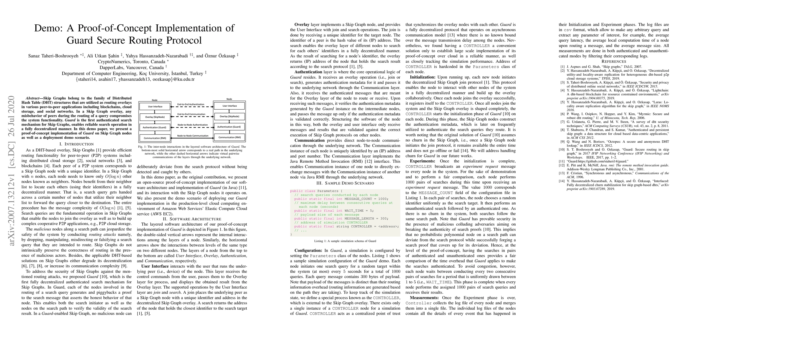 Skip Graphs belong to the family of Distributed Hash Table (DHT) structures that are utilized as routing overlays in various peer-to-peer applications including blockchains, cloud storage, and social networks. In a Skip Graph overlay, any misbehavior of peers during the routing of a query compromises the system functionality. Guard is the first authenticated search mechanism for Skip Graphs, enables reliable search operation in a fully decentralized manner. In this demo paper, we present a proof-of-concept implementation of Guard on Skip Graph nodes as well as a deployment demo scenario.