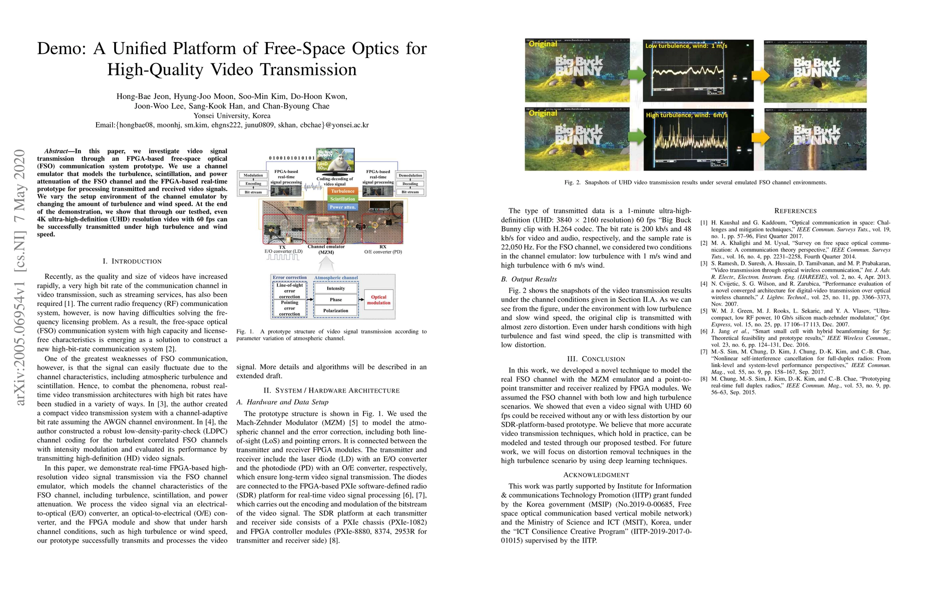 This paper demonstrates a unified FPGA-based free-space optics platform for high-quality video transmission, successfully transmitting 4K UHD video at 60 fps under high turbulence and wind conditions using a channel emulator.