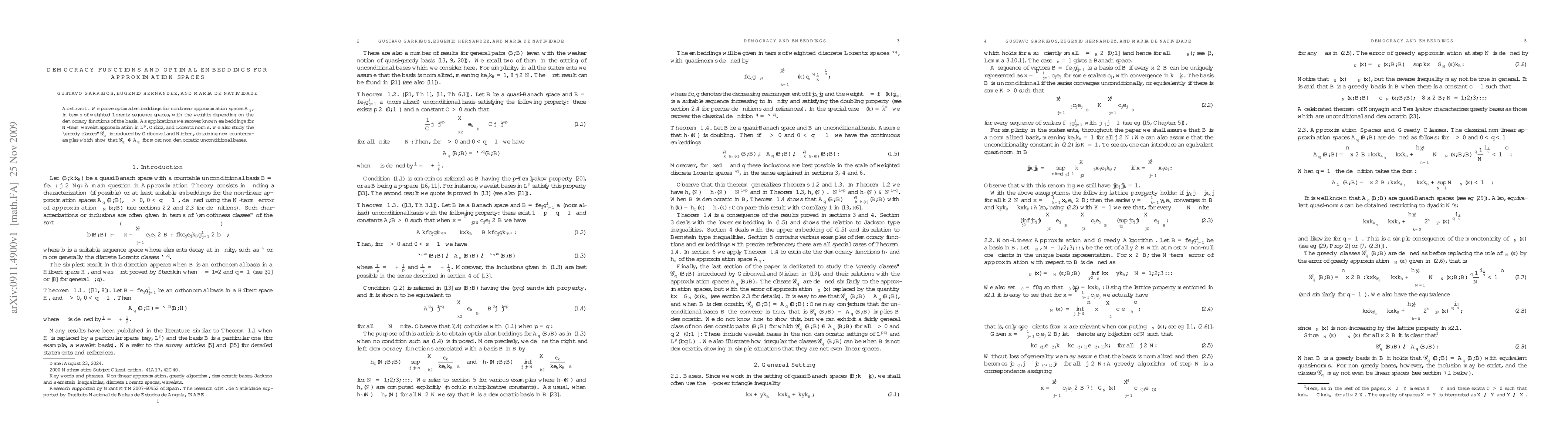 This paper proves optimal embeddings for nonlinear approximation spaces using weighted Lorentz sequence spaces, where the weights are based on democracy functions of the basis. It applies these results to recover known embeddings for $N$-term wavelet approximation and studies "greedy classes."