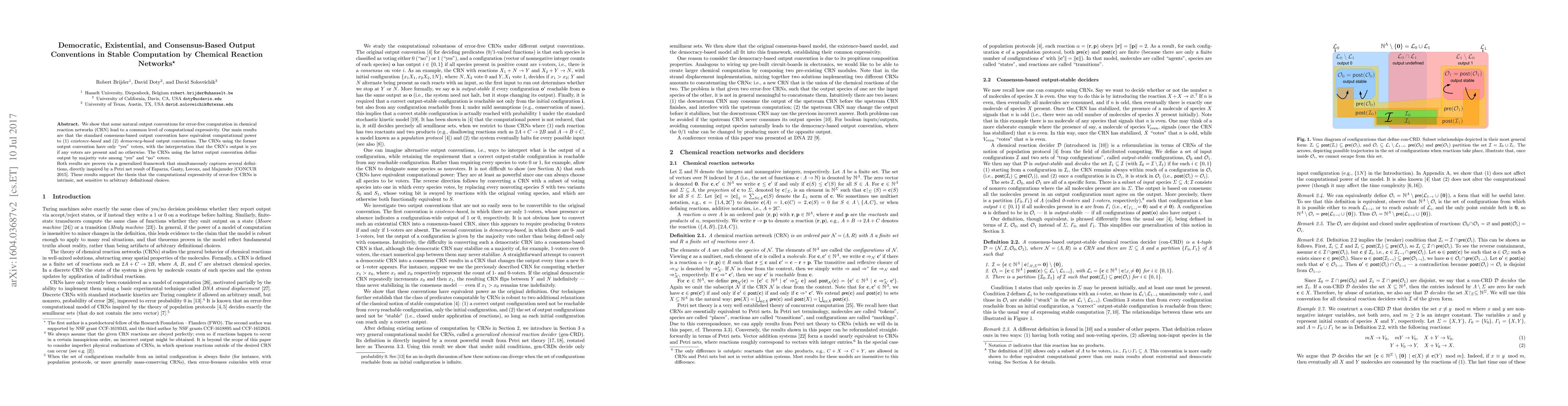 Chemical reaction networks (CRNs) using consensus-based output conventions have equivalent computational power to those using democracy- and existence-based conventions, suggesting that the expressivity of CRNs is intrinsic.