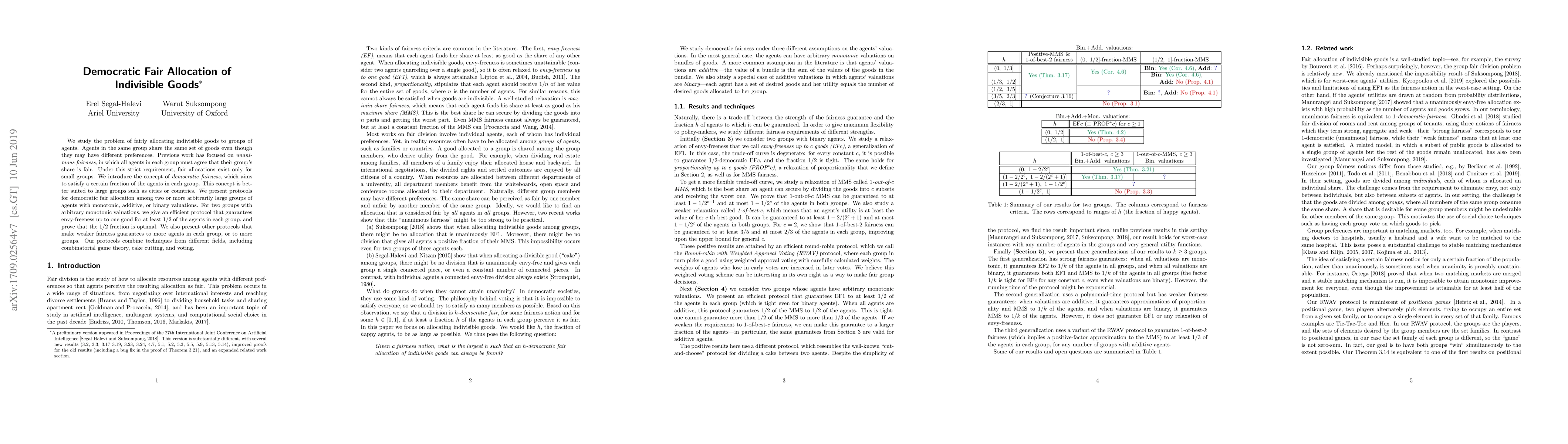 This paper introduces democratic fairness for allocating indivisible goods among groups, offering protocols that satisfy a fraction of agents rather than requiring unanimous agreement. It presents efficient envy-free allocation protocols for two large groups, with optimal guarantees for half the agents, and combines techniques from combinatorial game theory, cake cutting, and voting.