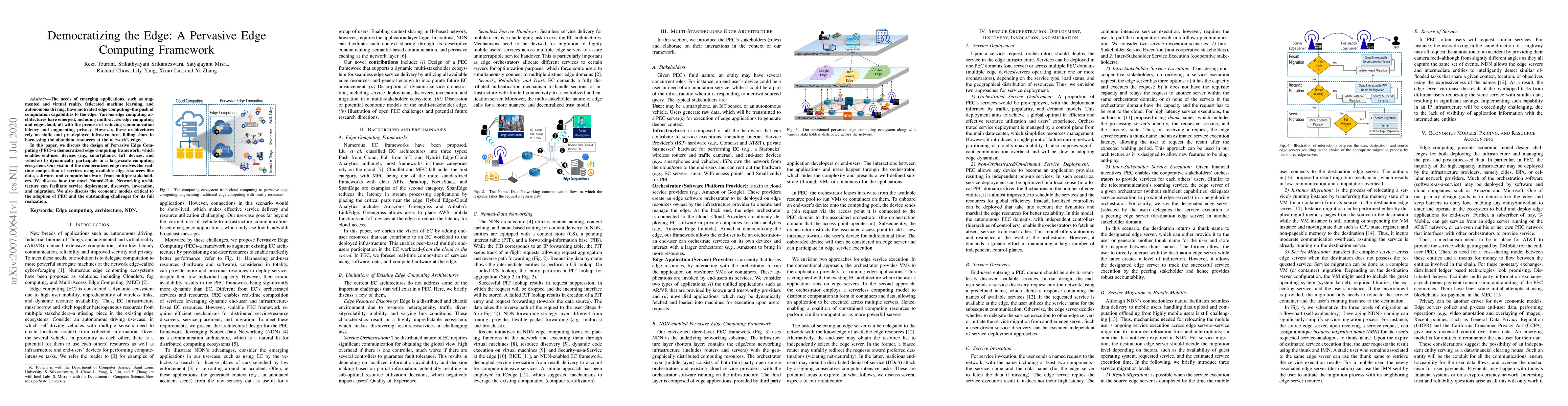 The needs of emerging applications, such as augmented and virtual reality, federated machine learning, and autonomous driving, have motivated edge computing--the push of computation capabilities to the edge. Various edge computing architectures have emerged, including multi-access edge computing and edge-cloud, all with the premise of reducing communication latency and augmenting privacy. However, these architectures rely on static and pre-deployed infrastructure, falling short in harnessing the abundant resources at the network's edge. In this paper, we discuss the design of Pervasive Edge Computing (PEC)--a democratized edge computing framework, which enables end-user devices (e.g., smartphones, IoT devices, and vehicles) to dynamically participate in a large-scale computing ecosystem. Our vision of the democratized edge involves the real-time composition of services using available edge resources like data, software, and compute-hardware from multiple stakeholders. We discuss how the novel Named-Data Networking architecture can facilitate service deployment, discovery, invocation, and migration. We also discuss the economic models critical to the adoption of PEC and the outstanding challenges for its full realization.