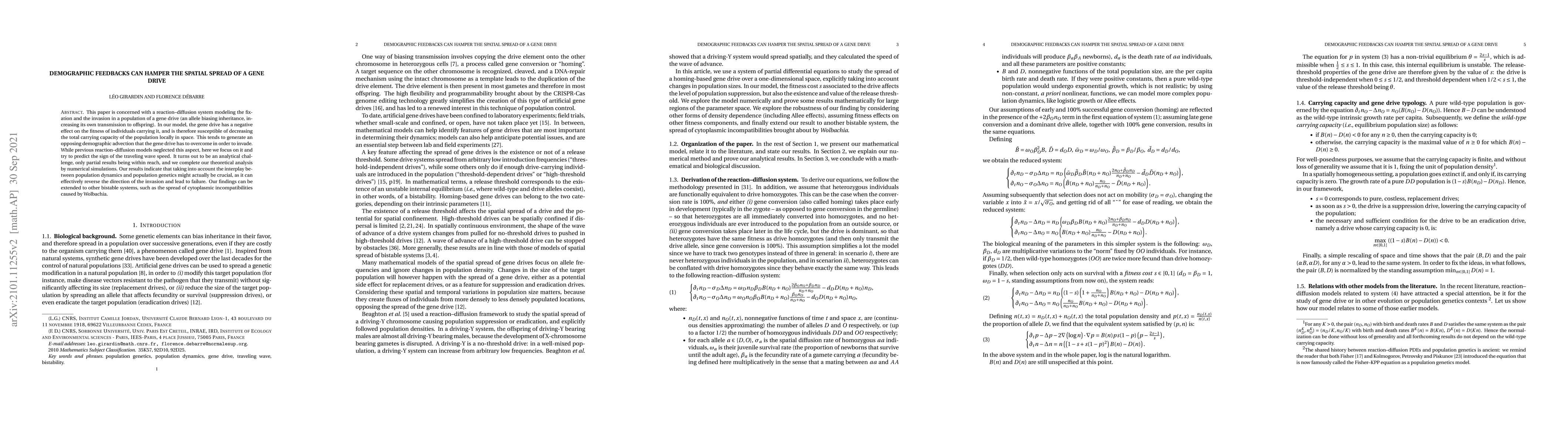 This paper is concerned with a reaction--diffusion system modeling the fixation and the invasion in a population of a gene drive (an allele biasing inheritance, increasing its own transmission to offspring). In our model, the gene drive has a negative effect on the fitness of individuals carrying it, and is therefore susceptible of decreasing the total carrying capacity of the population locally in space. This tends to generate an opposing demographic advection that the gene drive has to overcome in order to invade. While previous reaction--diffusion models neglected this aspect, here we focus on it and try to predict the sign of the traveling wave speed. It turns out to be an analytical challenge, only partial results being within reach, and we complete our theoretical analysis by numerical simulations. Our results indicate that taking into account the interplay between population dynamics and population genetics might actually be crucial, as it can effectively reverse the direction of the invasion and lead to failure. Our findings can be extended to other bistable systems, such as the spread of cytoplasmic incompatibilities caused by Wolbachia.