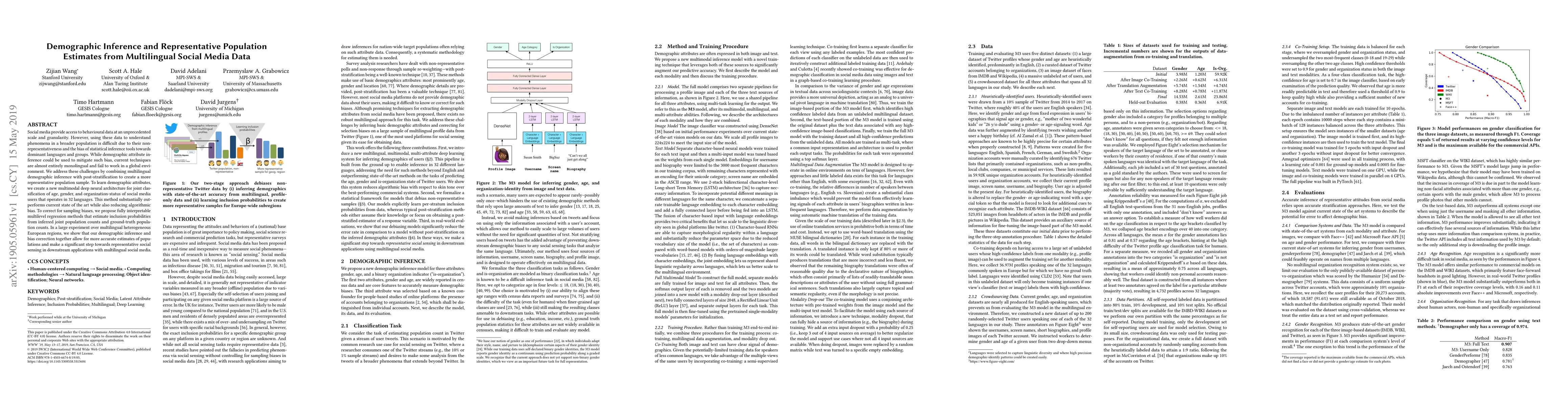 This paper develops a multimodal deep neural architecture for multilingual demographic inference to analyze social media data, addressing biases in current monolingual techniques. It combines this with multilevel regression for post-stratification to correct sampling biases, achieving more accurate and representative population estimates across diverse European regions.
