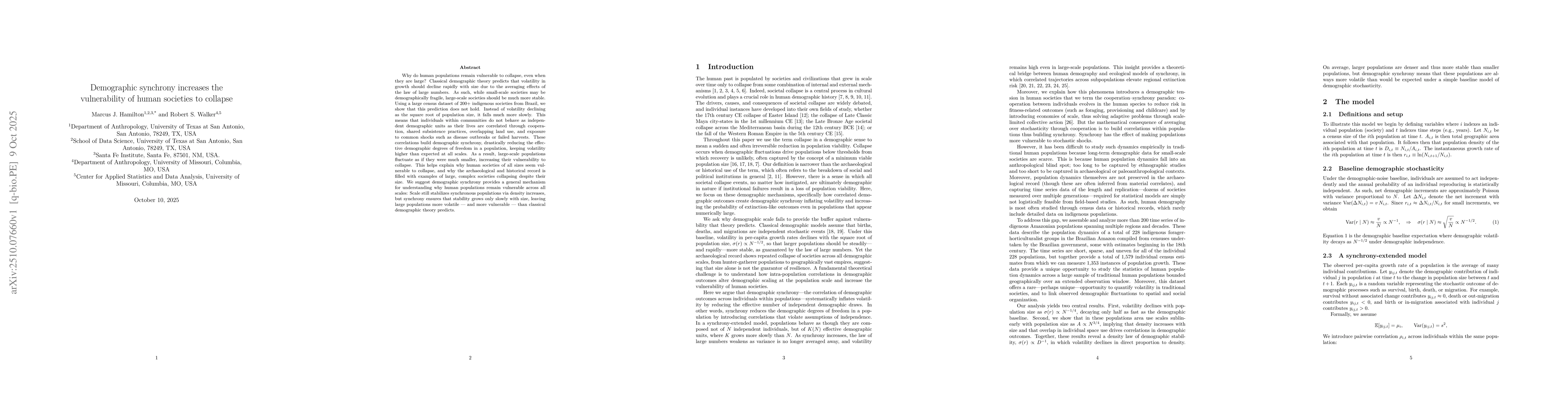 This research explains why human societies of all sizes remain vulnerable to collapse, challenging classical demographic theory and providing a framework for understanding historical and archaeological patterns of societal collapse.