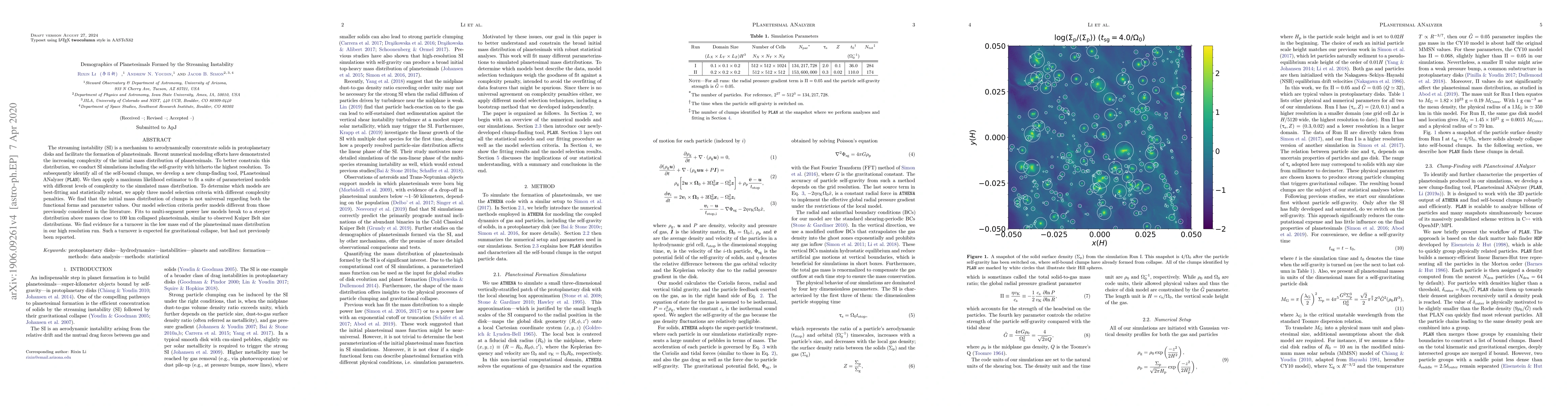 The streaming instability (SI) is a mechanism to aerodynamically concentrate solids in protoplanetary disks and facilitate the formation of planetesimals. Recent numerical modeling efforts have demonstrated the increasing complexity of the initial mass distribution of planetesimals. To better constrain this distribution, we conduct SI simulations including the self-gravity with hitherto the highest resolution. To subsequently identify all of the self-bound clumps, we develop a new clump-finding tool, PLanetesimal ANalyzer (\texttt{PLAN}). We then apply a maximum likelihood estimator to fit a suite of parameterized models with different levels of complexity to the simulated mass distribution. To determine which models are best-fitting and statistically robust, we apply three model selection criteria with different complexity penalties. We find that the initial mass distribution of clumps is not universal regarding both the functional forms and parameter values. Our model selection criteria prefer models different from those previously considered in the literature. Fits to multi-segment power law models break to a steeper distribution above masses close to 100 km collapsed planetesimals, similar to observed Kuiper Belt size distributions. We find evidence for a turnover in the low mass end of the planetesimal mass distribution in our high resolution run. Such a turnover is expected for gravitational collapse, but had not previously been reported.