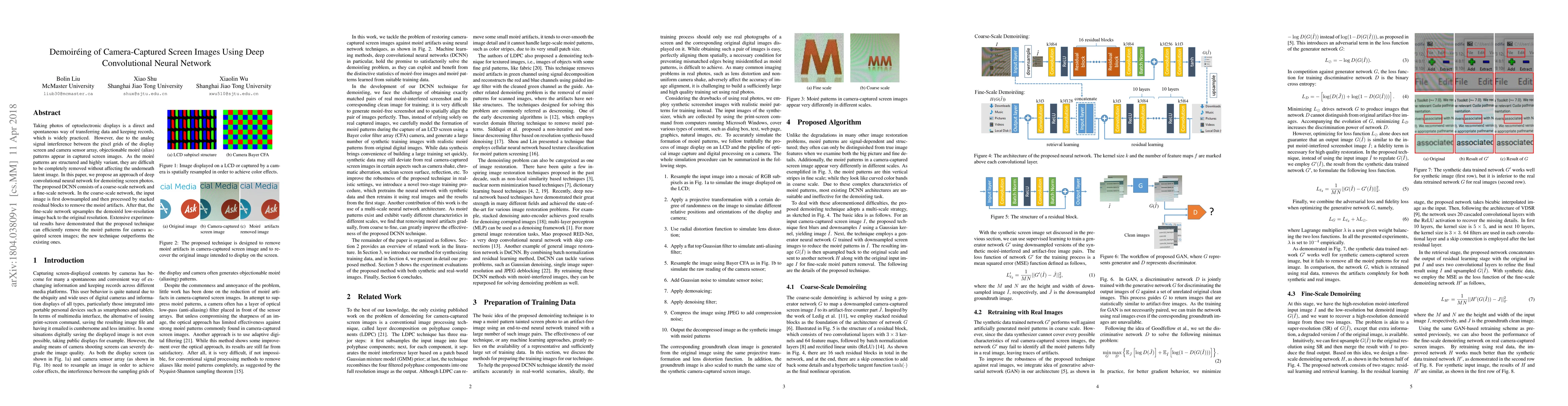 This paper proposes a deep convolutional neural network (DCNN) approach to demoir\'e camera-captured screen images, consisting of a coarse-scale network to remove moir\'e artifacts and a fine-scale network to restore the original image resolution. Experimental results show that the method effectively eliminates moir\'e patterns while preserving the underlying image, outperforming existing techniques.