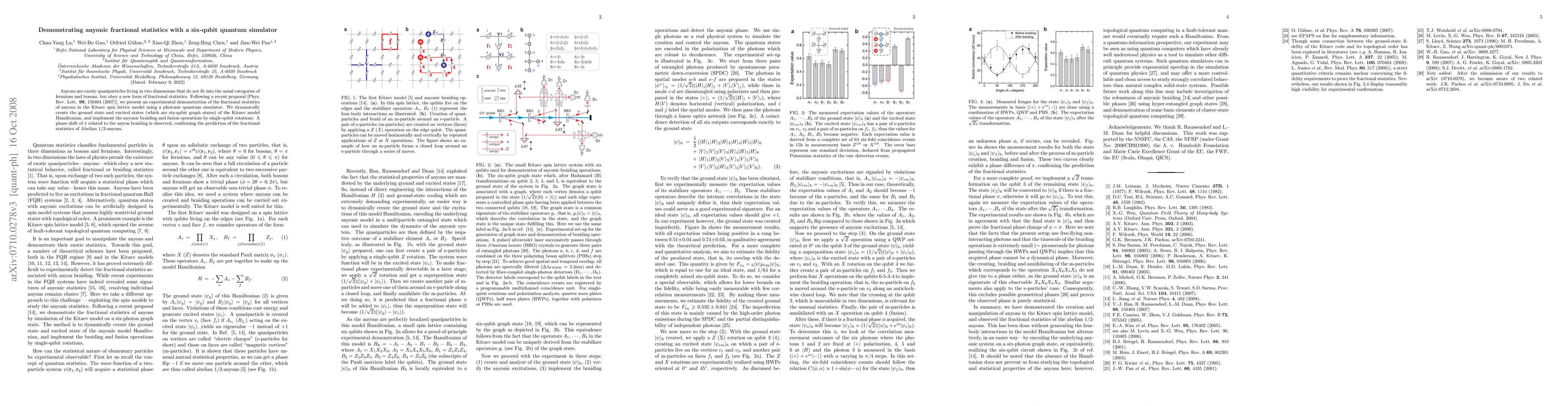 This research demonstrates the fractional statistics of anyons using a photonic quantum simulator to simulate the Kitaev spin lattice model. By implementing single-qubit rotations to mimic anyonic braiding and fusion, the study confirms the predicted $\pi$ phase shift, validating the existence of Abelian 1/2-anyons.