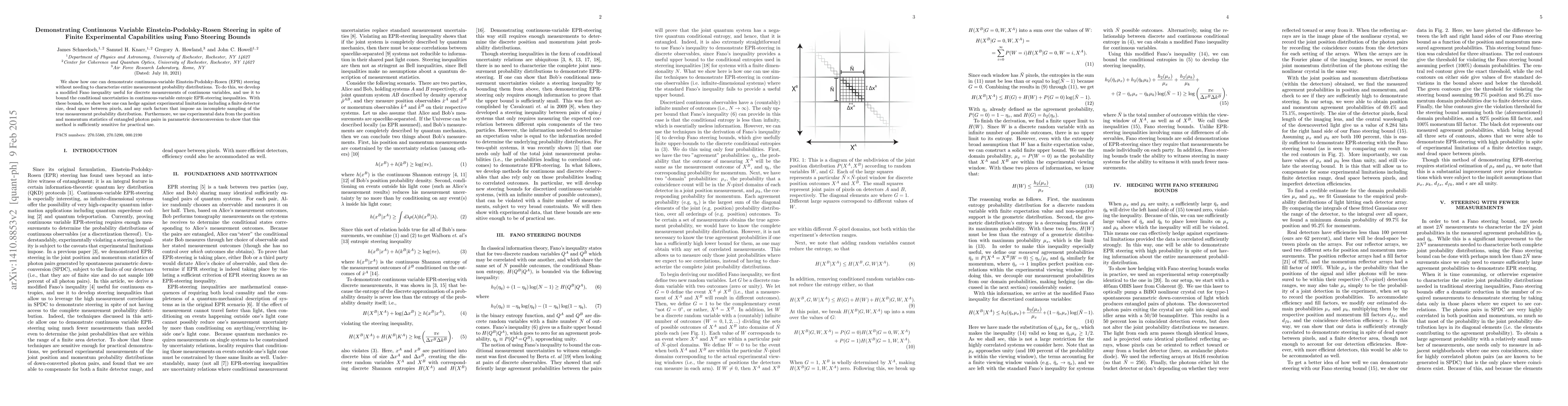 This paper demonstrates continuous-variable EPR steering using a modified Fano inequality for discrete measurements, allowing for practical use despite experimental limitations like finite detector size. The method is validated with experimental data from entangled photon pairs.