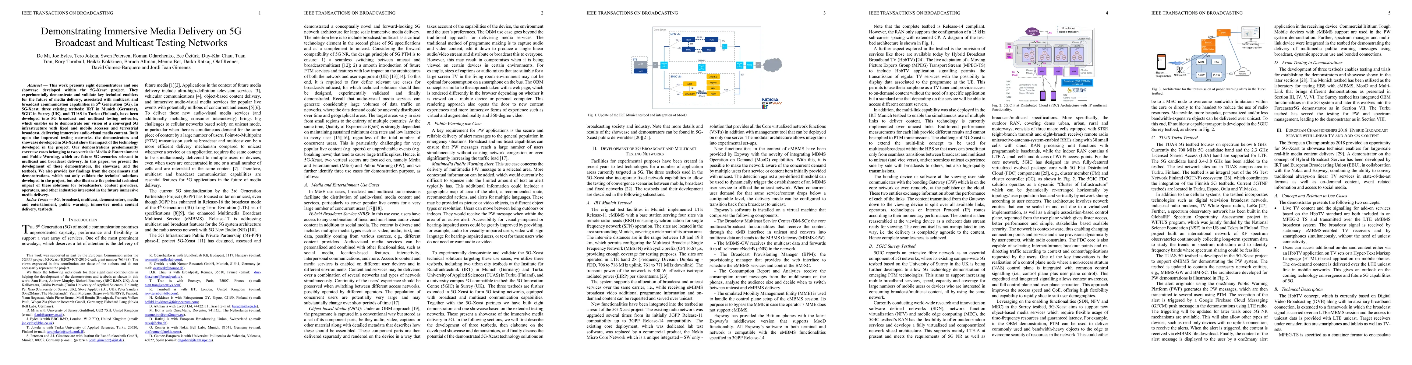 This paper presents eight demonstrators and one showcase developed within the 5G-Xcast project to validate 5G broadcast and multicast capabilities. The project enhanced three testbeds in Munich, Surrey, and Turku to demonstrate a converged 5G infrastructure for immersive media delivery, particularly in Media & Entertainment and Public Warning verticals.