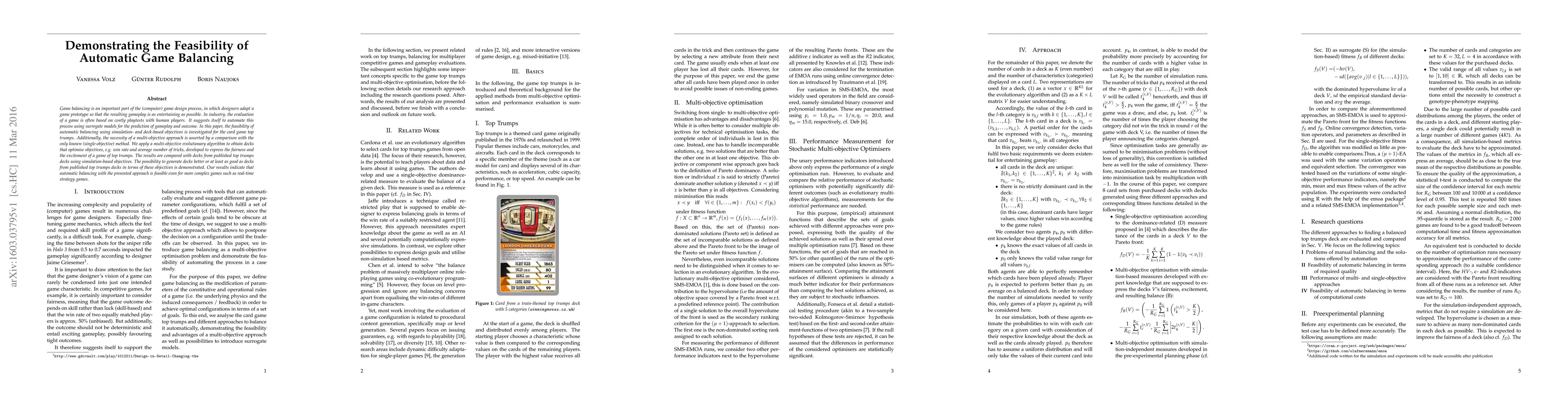 Researchers demonstrate the feasibility of automatically balancing game complexity using simulation-based objectives, achieving results comparable to published decks in popular card game Top Trumps.