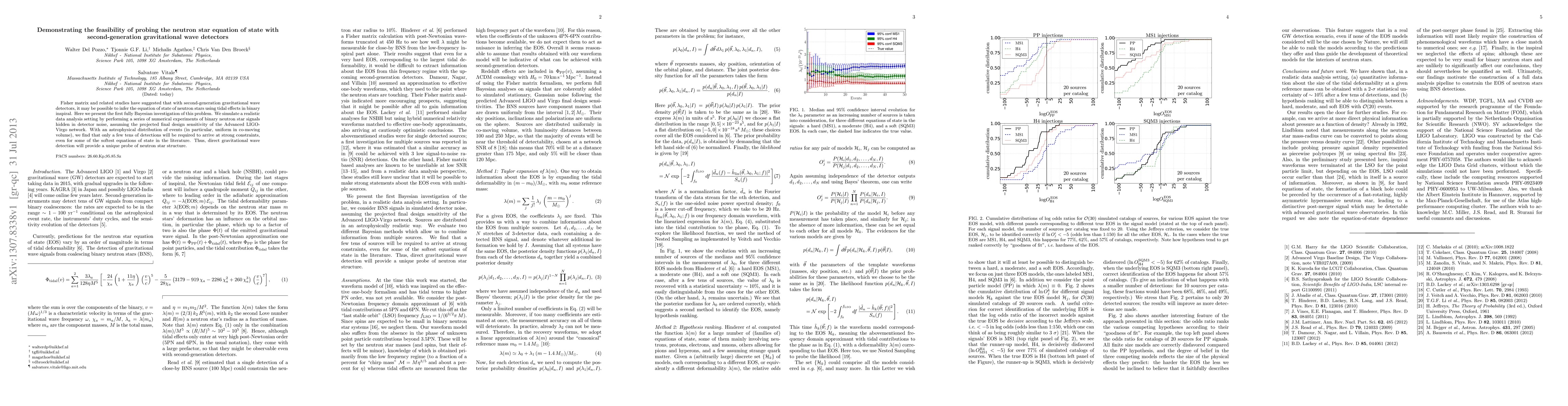 Fisher matrix and related studies have suggested that with second-generation gravitational wave detectors, it may be possible to infer the equation of state of neutron stars using tidal effects in binary inspiral. Here we present the first fully Bayesian investigation of this problem. We simulate a realistic data analysis setting by performing a series of numerical experiments of binary neutron star signals hidden in detector noise, assuming the projected final design sensitivity of the Advanced LIGO- Virgo network. With an astrophysical distribution of events (in particular, uniform in co-moving volume), we find that only a few tens of detections will be required to arrive at strong constraints, even for some of the softest equations of state in the literature. Thus, direct gravitational wave detection will provide a unique probe of neutron star structure.