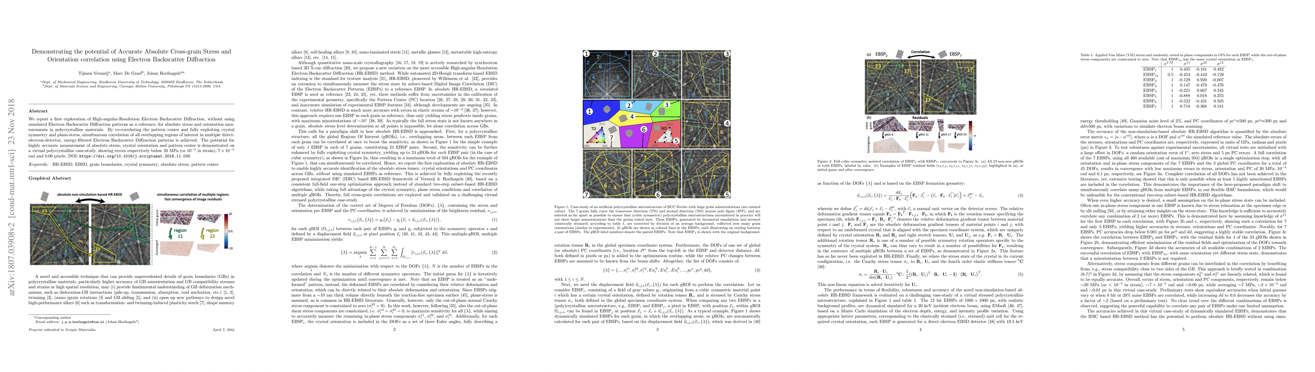 This study explores High-angular-Resolution Electron Backscatter Diffraction for precise absolute stress and orientation measurements in polycrystalline materials, achieving highly accurate results without simulated patterns, with errors below 20 MPa, 7e-5 rad, and 0.06 pixels.