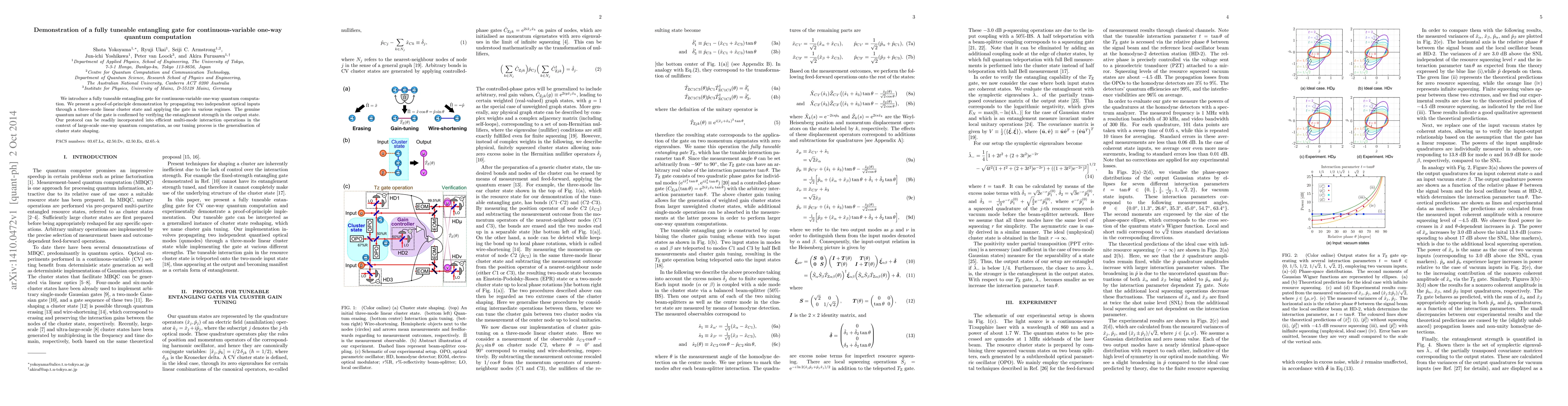 We introduce a fully tuneable entangling gate for continuous-variable one-way quantum computation. We present a proof-of-principle demonstration by propagating two independent optical inputs through a three-mode linear cluster state and applying the gate in various regimes. The genuine quantum nature of the gate is confirmed by verifying the entanglement strength in the output state. Our protocol can be readily incorporated into efficient multi-mode interaction operations in the context of large-scale one-way quantum computation, as our tuning process is the generalisation of cluster state shaping.