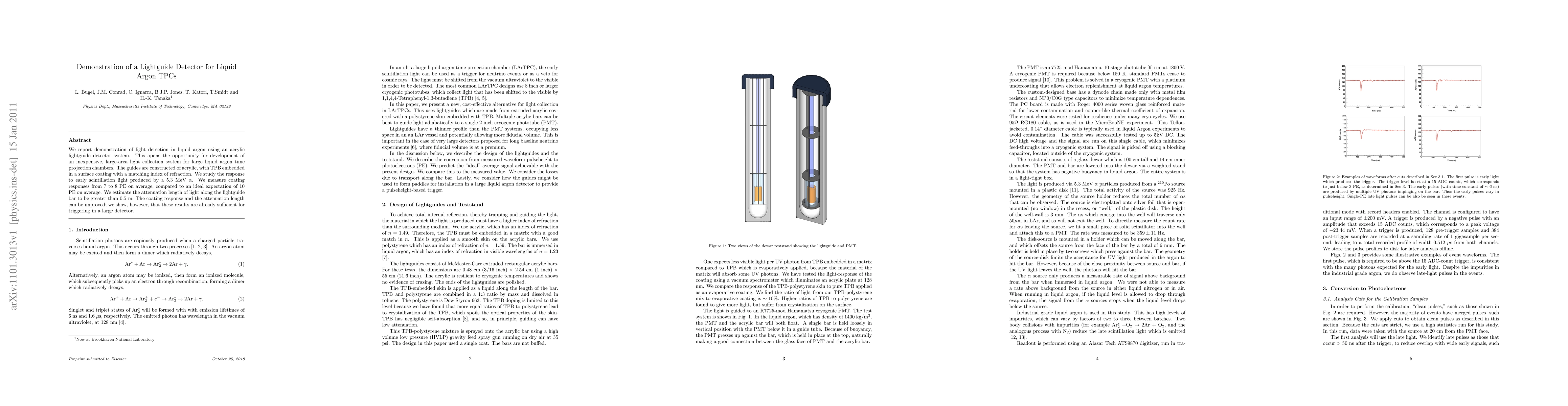 Researchers demonstrate a lightguide detector system for liquid argon time projection chambers, achieving detection of early scintillation light with an average 7-8 PE response, sufficient for triggering in large detectors.