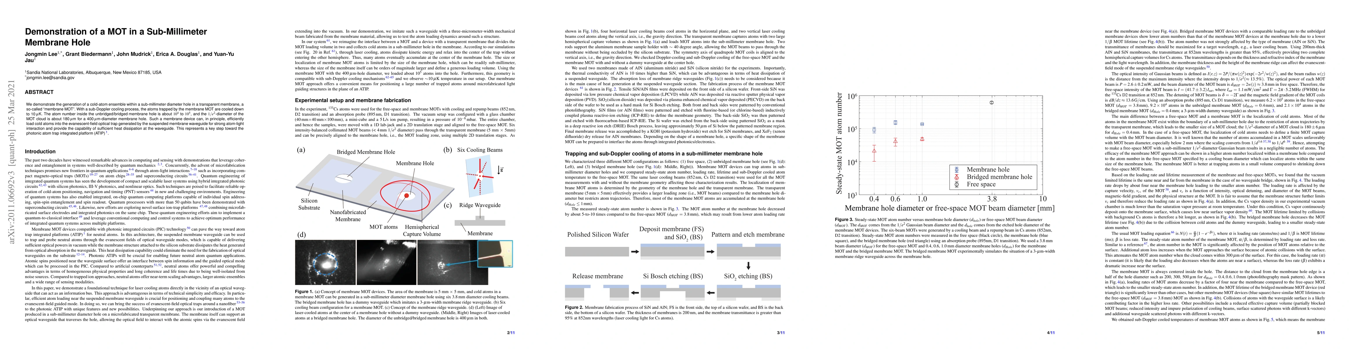 This paper demonstrates the creation of a "membrane MOT" within a sub-millimeter hole in a transparent membrane, achieving sub-Doppler cooling to 10 uK. The device efficiently loads cold atoms into an evanescent-field optical trap for strong atom-light interactions, marking a significant step toward the development of an integrated photonic atom trap platform (ATIP).