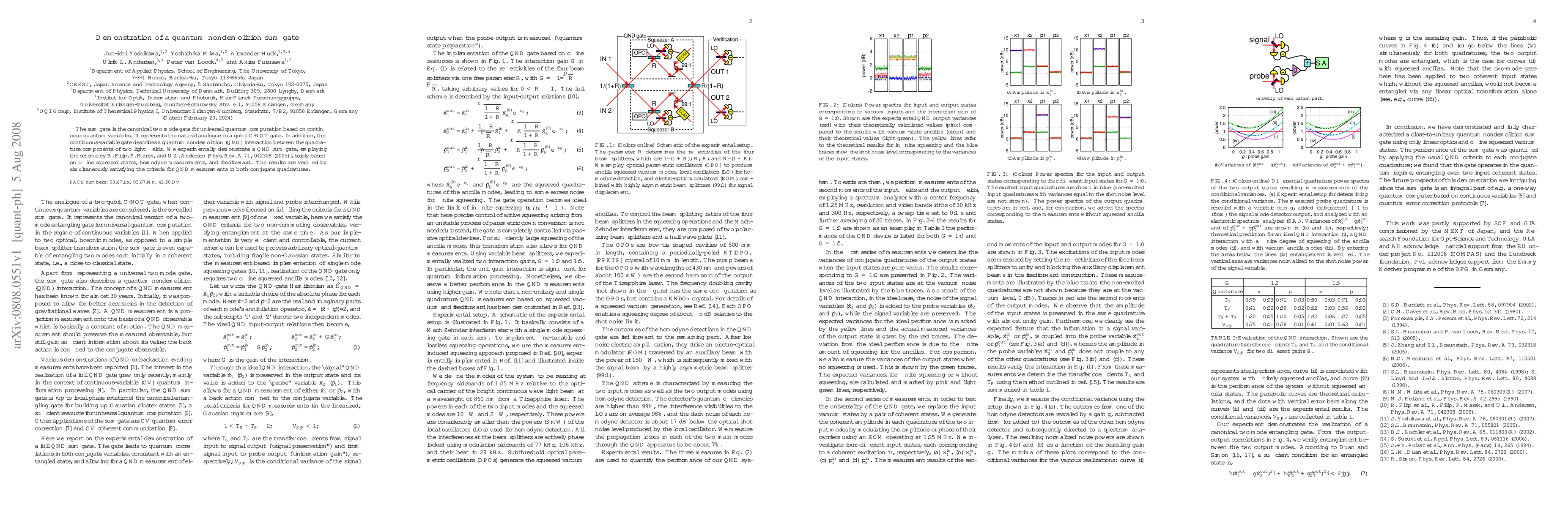 This paper demonstrates a quantum nondemolition (QND) sum gate using squeezed states, homodyne measurements, and feedforward, verifying the interaction between light field quadratures and establishing the gate's role in universal quantum computation. The experiment satisfies criteria for QND measurements in both conjugate quadratures.