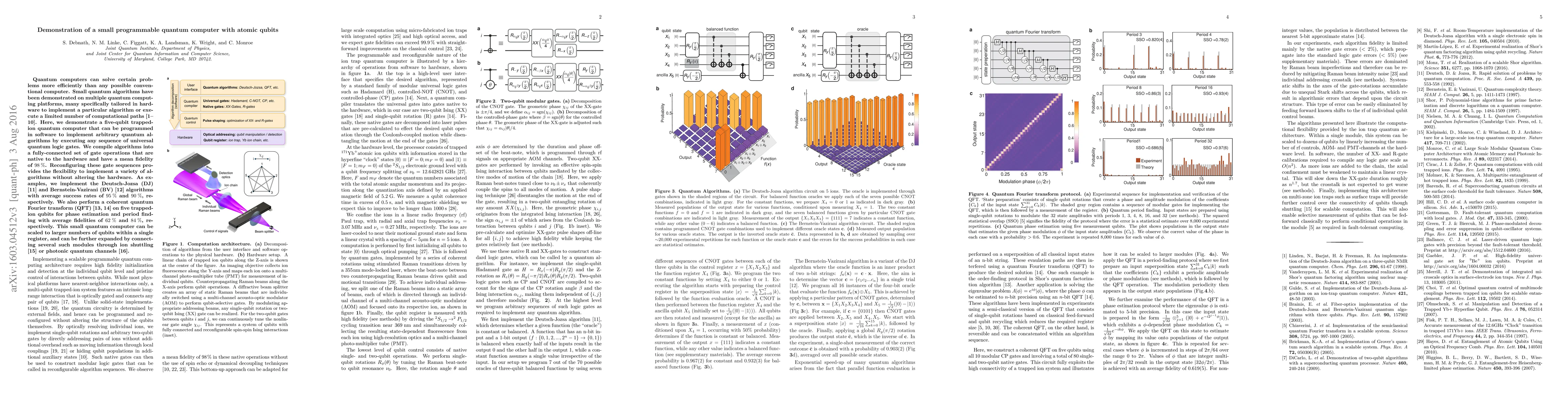 A five-qubit trapped-ion quantum computer has been demonstrated that can execute arbitrary quantum algorithms through software programming, with a mean fidelity of 98%. This breakthrough enables the creation of small-scale quantum computers that can be easily scaled up to larger numbers of qubits.