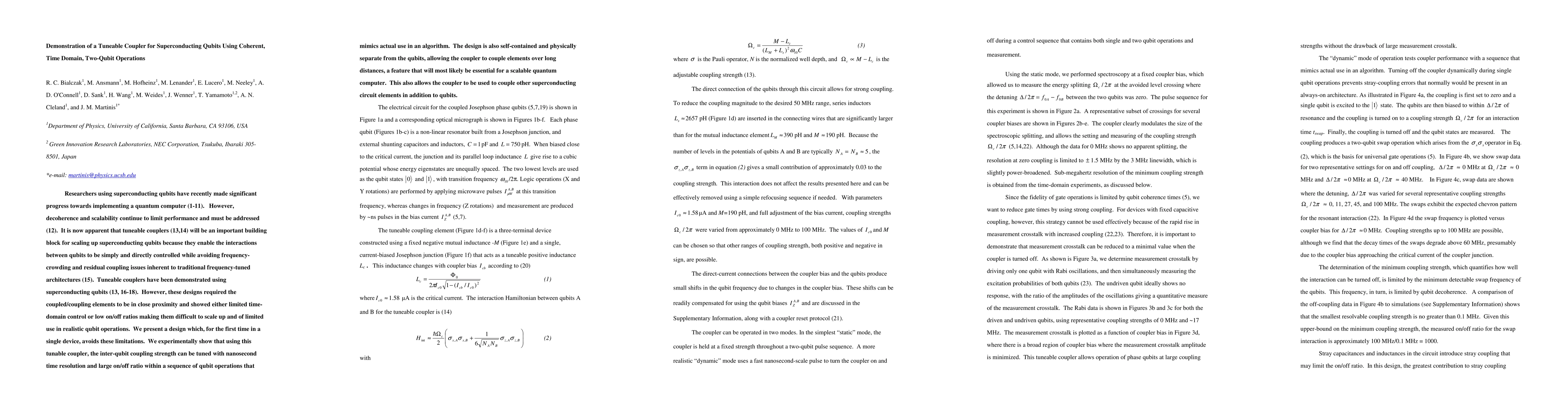 This paper demonstrates a novel tuneable coupler for superconducting qubits that allows for scalable quantum computing architectures. The coupler enables adjustable inter-qubit coupling over nanosecond timescales, with a high on/off ratio of 1000, and is designed to be modular and separate from the qubits.