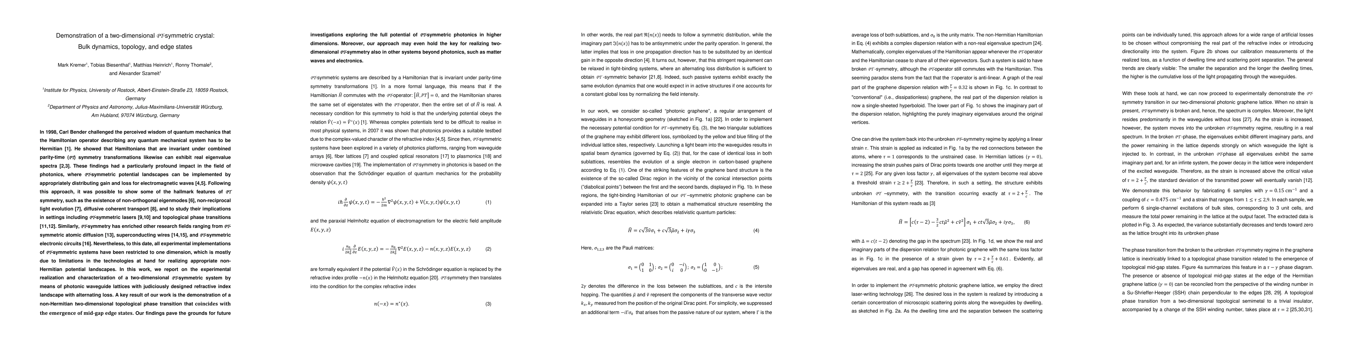 This paper demonstrates the experimental realization of a two-dimensional PT-symmetric crystal using photonic waveguide lattices, showcasing bulk dynamics, topological phase transitions, and the emergence of mid-gap edge states, thus expanding the potential applications of PT-symmetry beyond photonics.