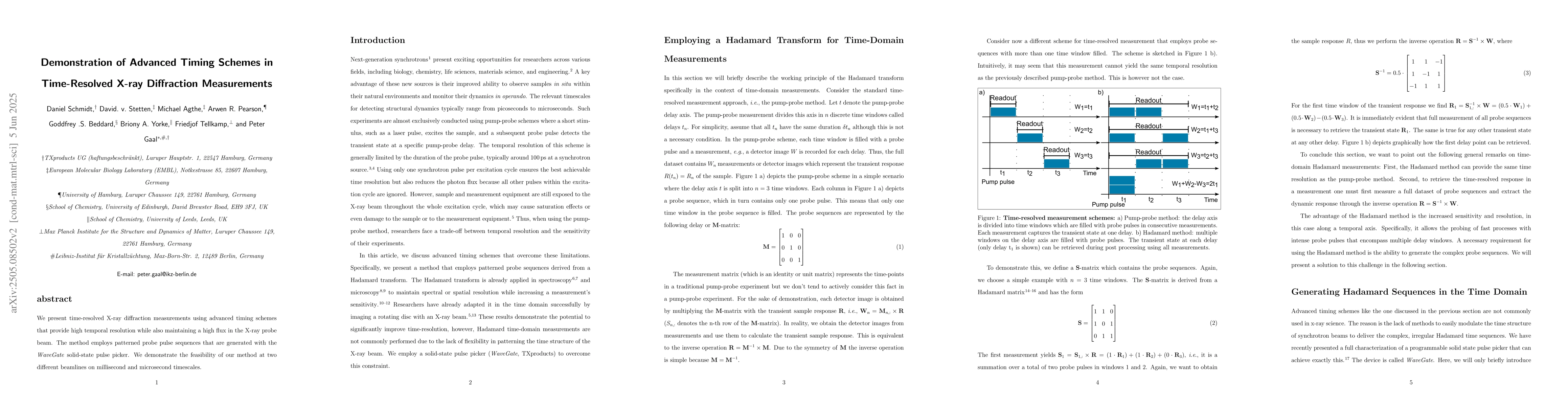 This work stands out by combining high temporal resolution with high X-ray flux, facilitated by advanced timing schemes and the WaveGate pulse picker, not previously extensively demonstrated in time-resolved X-ray diffraction.