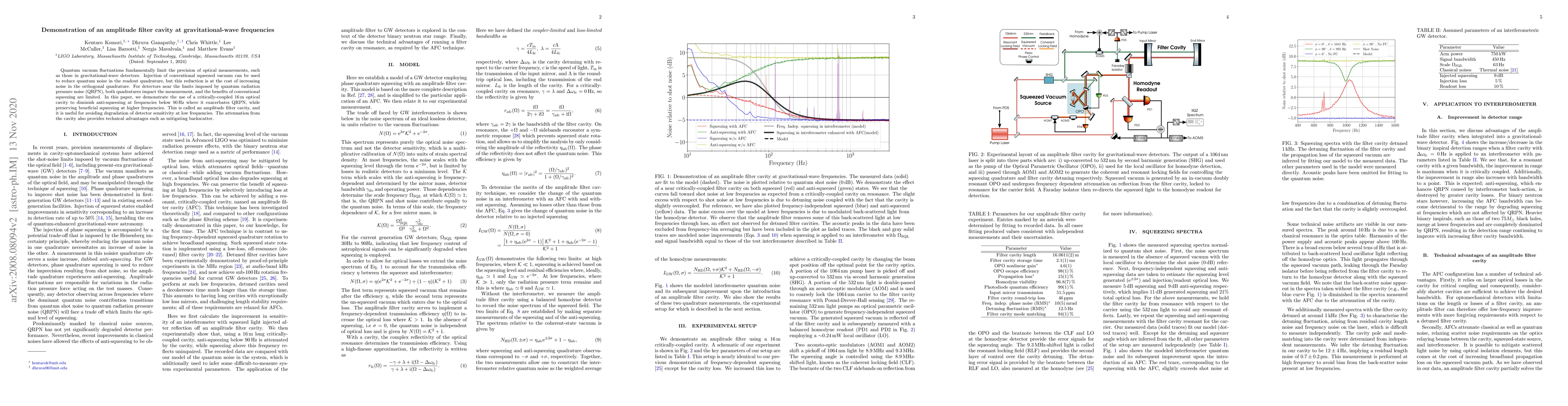 This paper demonstrates an amplitude filter cavity that reduces anti-squeezing at low frequencies to mitigate quantum radiation pressure noise while preserving squeezing at higher frequencies, enhancing the sensitivity of gravitational-wave detectors. The cavity also offers technical benefits like mitigating backscatter.