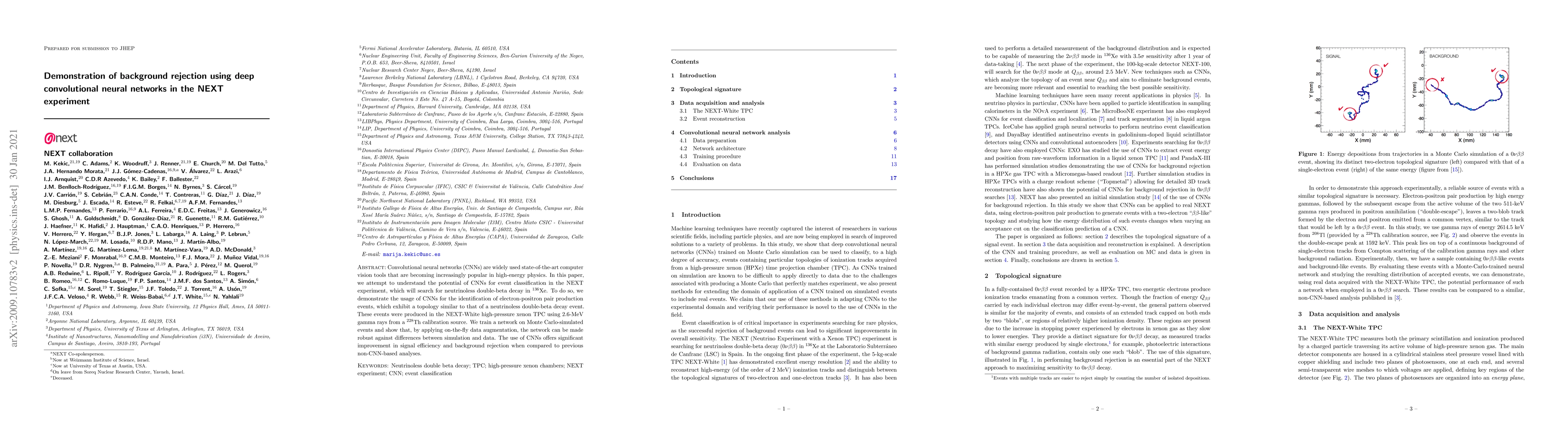 Researchers used deep convolutional neural networks to improve signal efficiency and background rejection in neutrinoless double-beta decay experiments. They achieved significant improvements over non-CNN-based analyses using Monte Carlo-simulated events.
