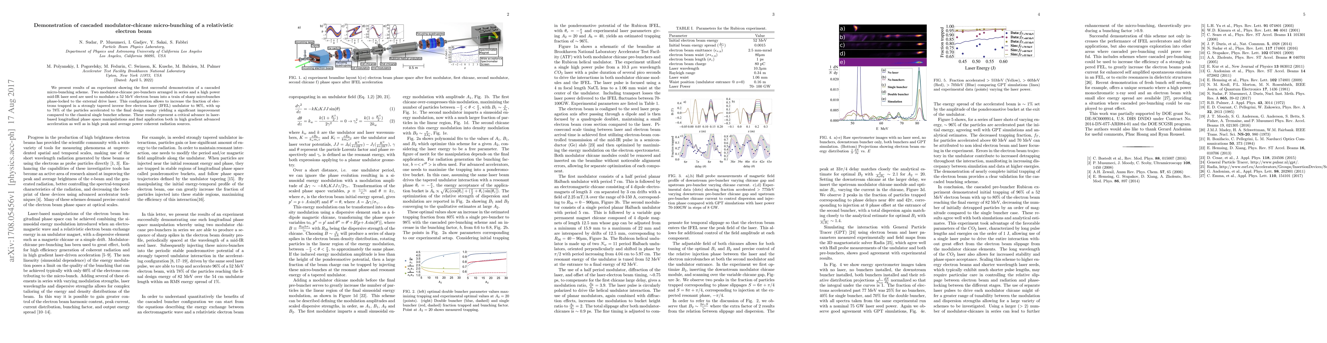 We present results of an experiment showing the first successful demonstration of a cascaded micro-bunching scheme. Two modulator-chicane pre-bunchers arranged in series and a high power mid-IR laser seed are used to modulate a 52 MeV electron beam into a train of sharp microbunches phase-locked to the external drive laser. This configuration allows to increase the fraction of electrons trapped in a strongly tapered inverse free electron laser (IFEL) undulator to 96\%, with up to 78\% of the particles accelerated to the final design energy yielding a significant improvement compared to the classical single buncher scheme. These results represent a critical advance in laser-based longitudinal phase space manipulations and find application both in high gradient advanced acceleration as well as in high peak and average power coherent radiation sources.