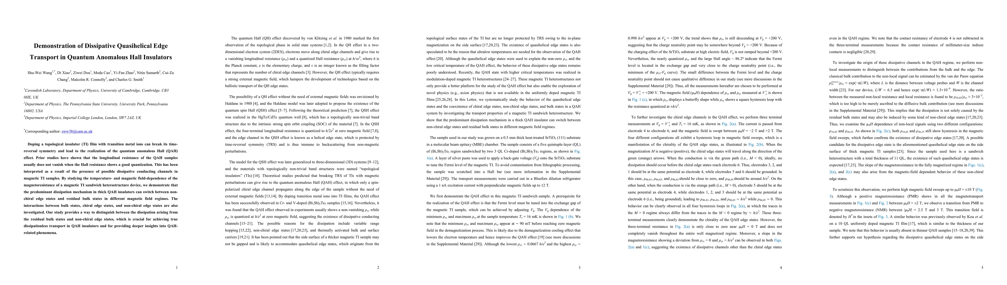 This paper demonstrates that in quantum anomalous Hall insulators, the predominant dissipation mechanism can switch between non-chiral edge states and residual bulk states under varying magnetic field regimes, providing insights into achieving true dissipationless transport.