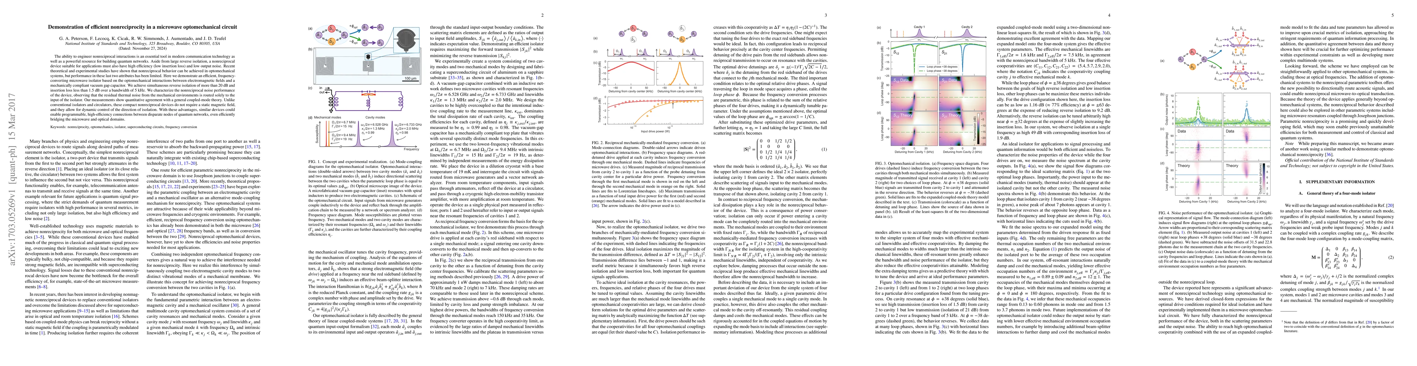 This paper demonstrates an efficient microwave isolator using optomechanical interactions in a vacuum gap capacitor, achieving over 20 dB reverse isolation and less than 1.5 dB insertion loss over a 5 kHz bandwidth. The device shows low output noise and does not require a static magnetic field, potentially enabling high-efficiency connections in quantum networks.