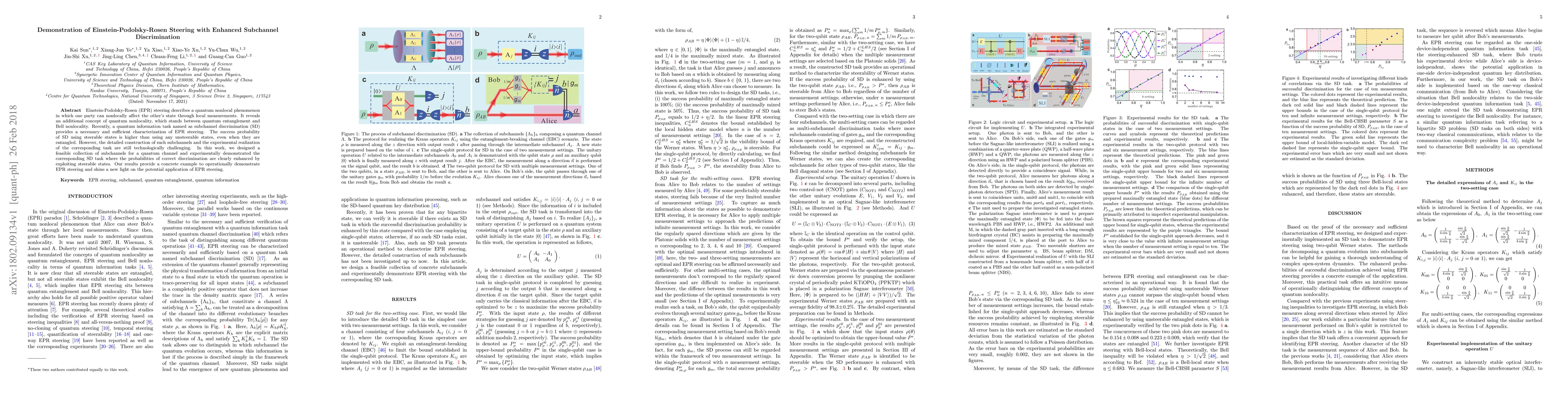 This paper demonstrates a feasible quantum information task of subchannel discrimination (SD) to show Einstein-Podolsky-Rosen (EPR) steering, where steerable states enhance discrimination success probability. The experimental realization highlights the potential applications of EPR steering beyond entanglement and Bell nonlocality.