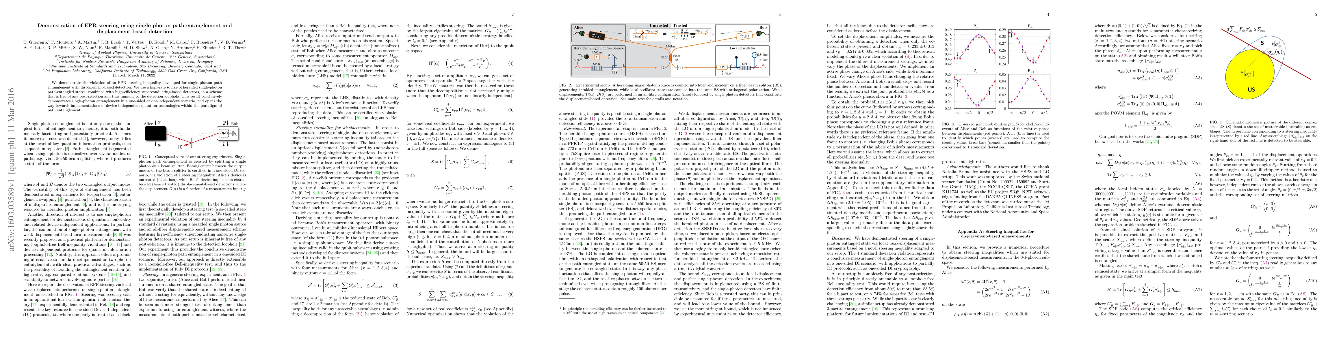 This paper demonstrates the violation of an EPR steering inequality using single-photon path entanglement and displacement-based detection, showcasing a loophole-free proof of single-photon entanglement in a device-independent scenario. The method employs high-rate heralded states and efficient superconducting detectors, paving the way for device-independent quantum technologies.