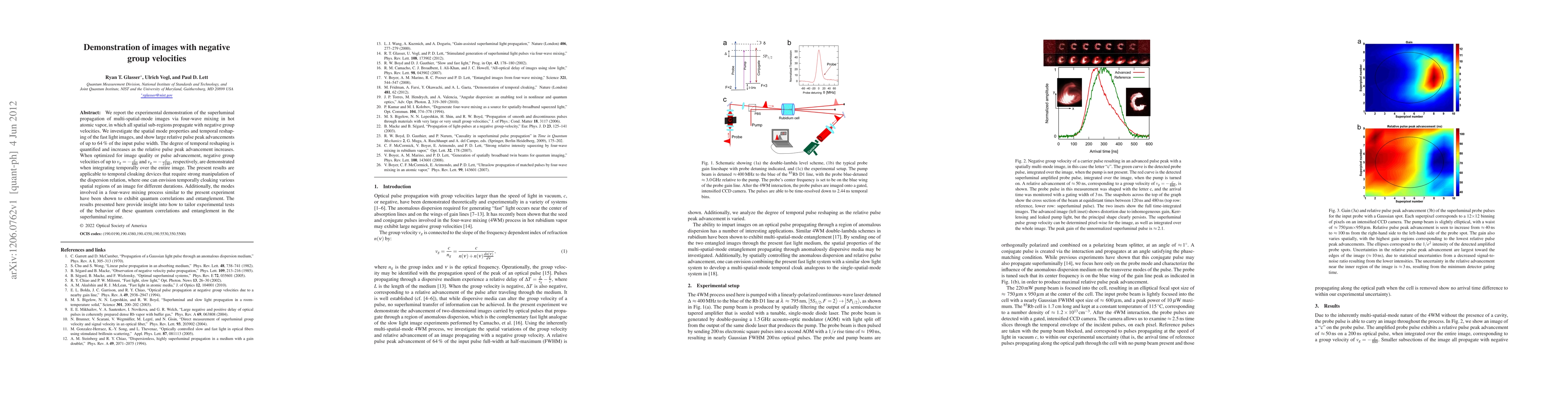 We report the experimental demonstration of the superluminal propagation of multi-spatial-mode images via four-wave mixing in hot atomic vapor, in which all spatial sub-regions propagate with negative group velocities. We investigate the spatial mode properties and temporal reshaping of the fast light images, and show large relative pulse peak advancements of up to 64% of the input pulse width. The degree of temporal reshaping is quantified and increases as the relative pulse peak advancement increases. When optimized for image quality or pulse advancement, negative group velocities of up to $v_{g}=-\frac{c}{880}$ and $v_{g}=-\frac{c}{2180}$, respectively, are demonstrated when integrating temporally over the entire image. The present results are applicable to temporal cloaking devices that require strong manipulation of the dispersion relation, where one can envision temporally cloaking various spatial regions of an image for different durations. Additionally, the modes involved in a four-wave mixing process similar to the present experiment have been shown to exhibit quantum correlations and entanglement. The results presented here provide insight into how to tailor experimental tests of the behavior of these quantum correlations and entanglement in the superluminal regime.