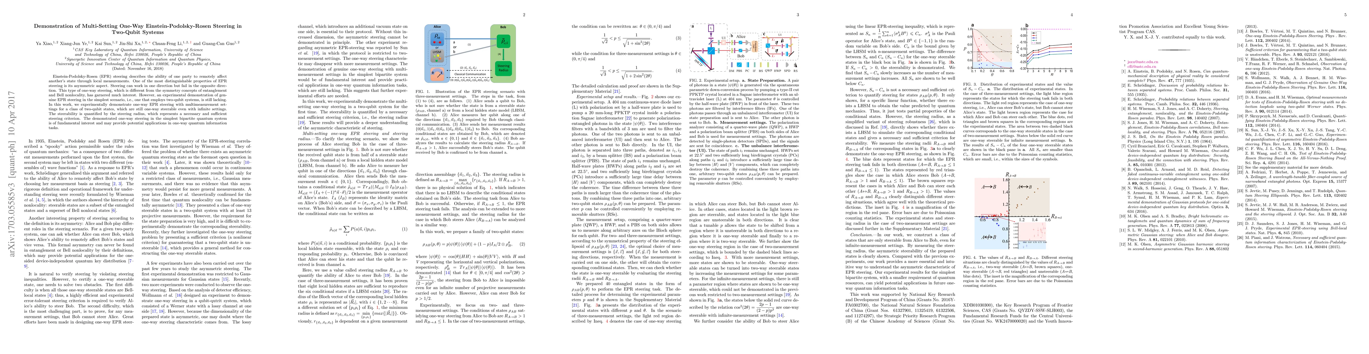 This paper demonstrates one-way Einstein-Podolsky-Rosen (EPR) steering in two-qubit systems using multimeasurement settings, quantifying steerability with a steering radius. The experiment highlights the asymmetric nature of one-way steering, which could have implications for quantum information tasks.