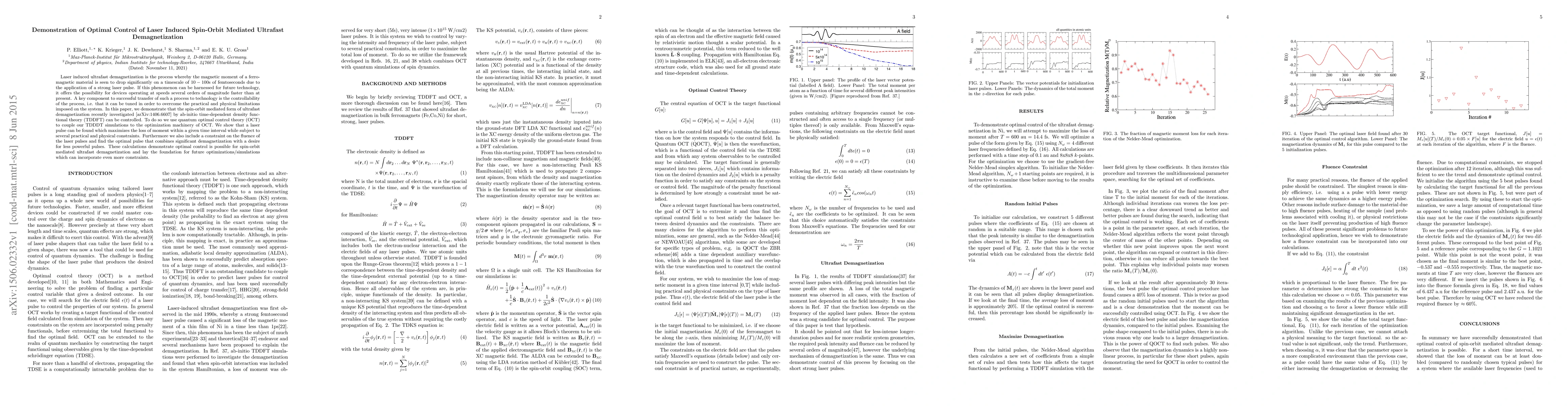 This paper demonstrates the optimal control of laser-induced spin-orbit mediated ultrafast demagnetization using quantum optimal control theory, showing that a laser pulse can maximize magnetic moment loss while adhering to practical constraints and minimizing fluence. This lays the groundwork for future technological applications leveraging ultrafast demagnetization.