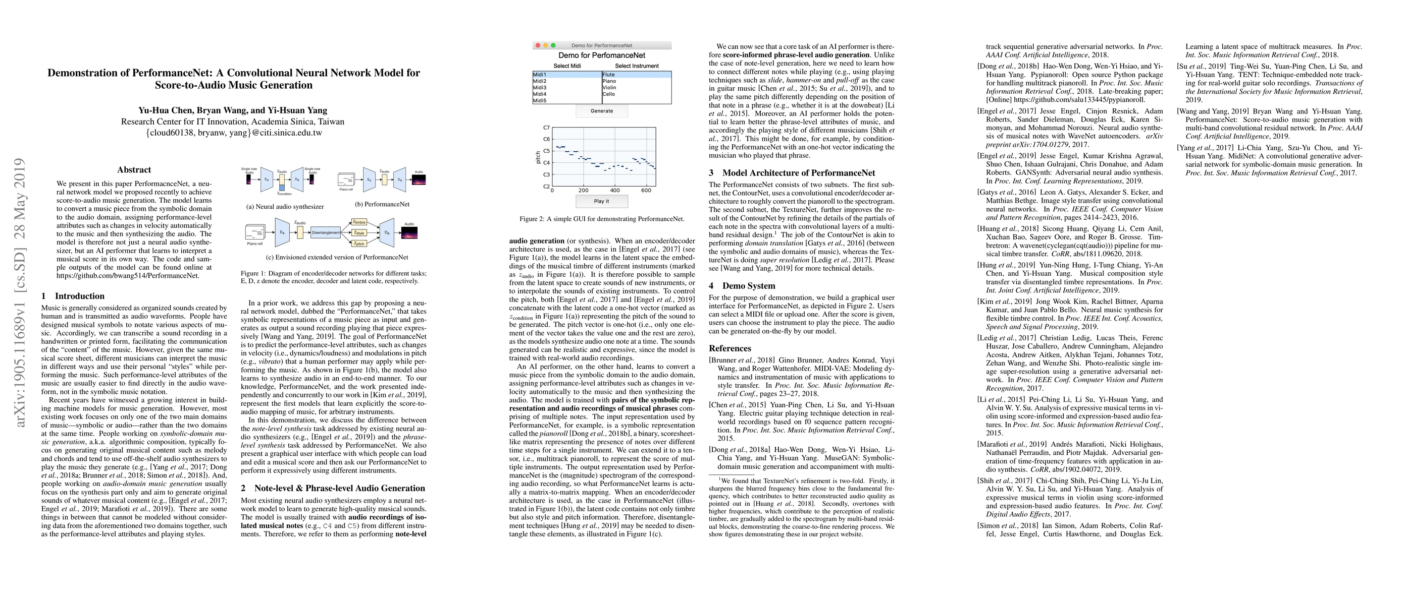 PerformanceNet is a convolutional neural network model designed for score-to-audio music generation, converting symbolic music scores into audio with performance-level attributes. The model functions as an AI performer, learning to interpret and synthesize music in its own way.