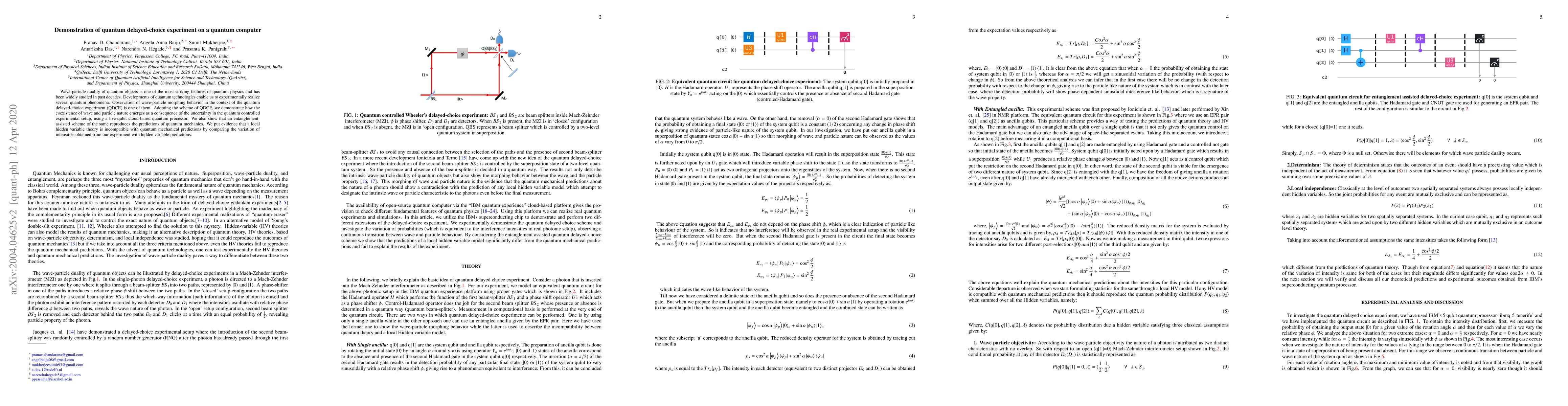 Researchers demonstrate a quantum delayed-choice experiment on a quantum computer, showing how wave-particle duality emerges from uncertainty in the experimental setup. The study also compares the results with local hidden variable theories, providing evidence that they are incompatible with quantum mechanics predictions.