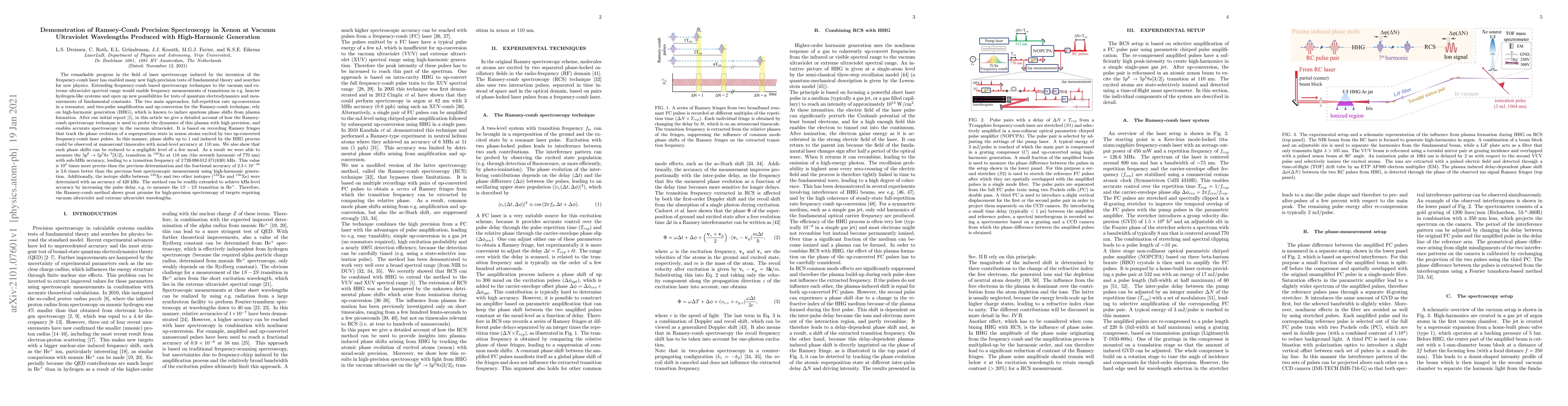 The remarkable progress in the field of laser spectroscopy induced by the invention of the frequency-comb laser has enabled many new high-precision tests of fundamental theory and searches for new physics. Extending frequency-comb based spectroscopy techniques to the vacuum (VUV) and extreme ultraviolet (XUV) spectral range would enable measurements in e.g. heavier hydrogen-like systems and open up new possibilities for tests of quantum electrodynamics and measurements of fundamental constants. The main approaches rely on high-harmonic generation (HHG), which is known to induce spurious phase shifts from plasma formation. After our initial report (Physical Review Letters 123, 143001 (2019)), we give a detailed account of how the Ramsey-comb technique is used to probe the plasma dynamics with high precision, and enables accurate spectroscopy in the VUV. A series of Ramsey fringes is recorded to track the phase evolution of a superposition state in xenon atoms, excited by two up-converted frequency-comb pulses. Phase shifts of up to 1 rad induced by HHG were observed at ns timescales and with mrad-level accuracy at $110$ nm. Such phase shifts could be reduced to a negligible level, enabling us to measure the $5p^6 \rightarrow 5p^5 8s~^2[3/2]_1$ transition frequency in $^{132}Xe$ at 110 nm (seventh harmonic) with sub-MHz accuracy. The obtained value is $10^4$ times more precise than the previous determination and the fractional accuracy of $2.3 \times 10^{-10}$ is $3.6$ times better than the previous best spectroscopic measurement using HHG. The isotope shifts between $^{132}Xe$ and two other isotopes were determined with an accuracy of $420$ kHz. The method can be readily extended to achieve kHz-level accuracy, e.g. to measure the $1S-2S$ transition in $He^+$. Therefore, the Ramsey-comb method shows great promise for high-precision spectroscopy of targets requiring VUV and XUV wavelengths.
