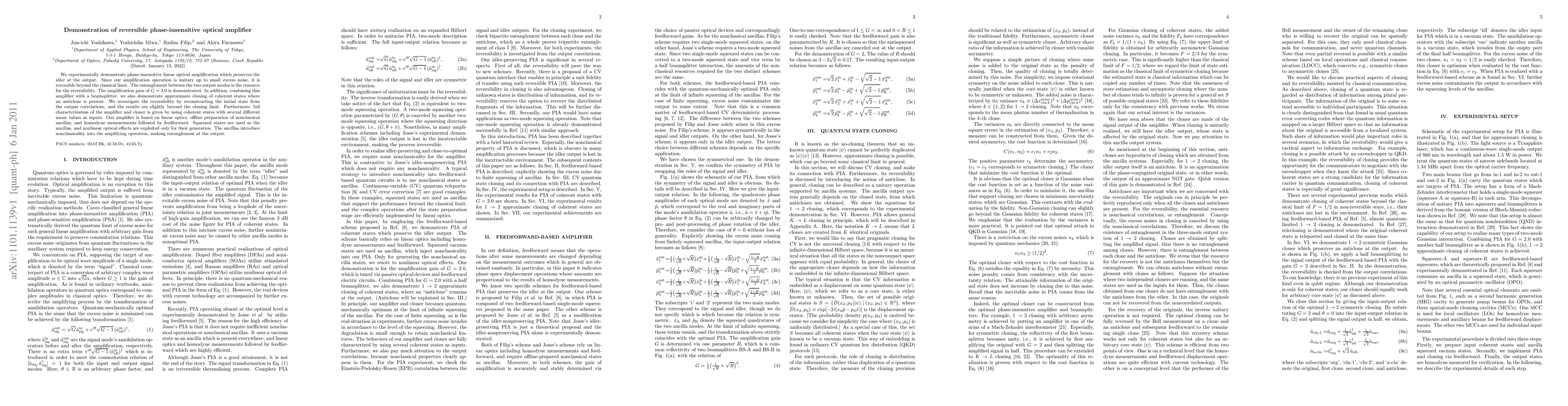 Researchers demonstrate a reversible phase-insensitive optical amplifier that preserves idler light, with an amplification gain of 2.0 and shows promise for approximate cloning of coherent states.