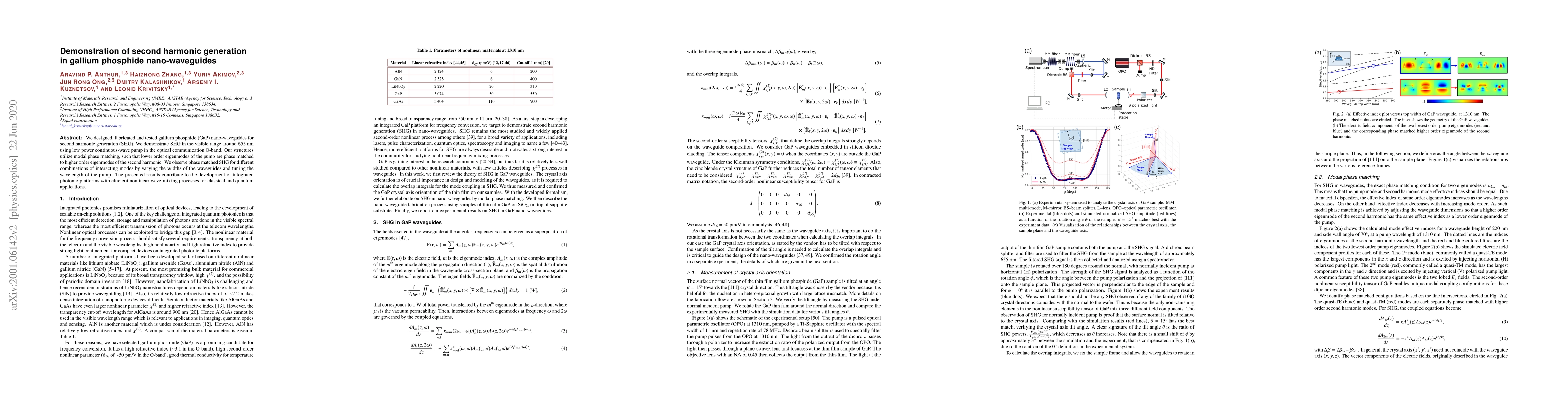 Researchers successfully demonstrated second harmonic generation (SHG) in gallium phosphide (GaP) nano-waveguides, achieving visible output around 655 nm using low power continuous-wave pump in the O-band. The study utilizes modal phase matching to optimize SHG efficiency across varying waveguide widths and pump wavelengths.